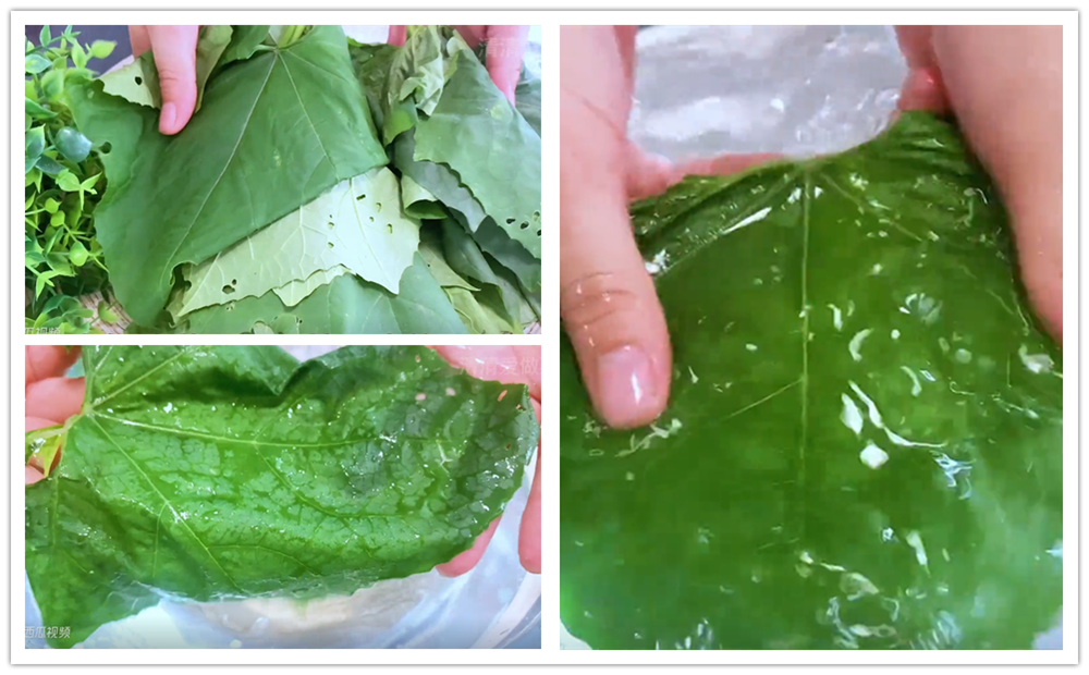 首先我们要给丝瓜叶进行一次清洗,打一碗清水,加入一勺食用盐搅化,接着把丝瓜叶一张一张地单独清洗,用手轻轻反复揉搓,确保不落下每个位置,切记不要图方便一股脑的都倒下去哦!因为婶婶不打农药,施的也是农家肥,所以会有很多小虫子附着在叶子上面,只有方方面面的清洗,才能把虫卵跟脏东西全部清理干净。