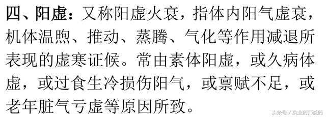 阳虚的主要表现为:除有气虚的表现外,还有怕冷,四肢不温,喜热饮,体温常偏低,腰酸腿软,阳痿早泄,小腹冷痛,乏力,小便清长等。