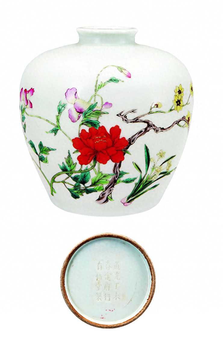 “行有恒堂”是定府第四代主人定亲王载铨的私人堂号(清道光道光丁未春定府行有恒堂制款粉彩折枝花卉罐及款识故宫博物院藏)
