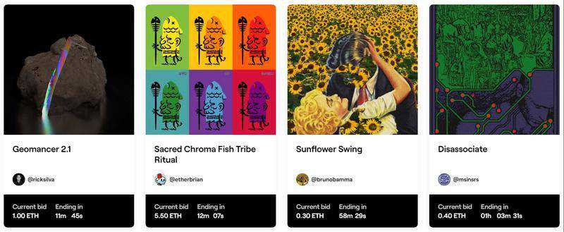在Foundation平台上,一批风格各异的数字艺术作品正在拍卖中。根据区块链行业媒体CoinDesk的消息,此前有一组名为CryptoPunks的加密艺术作品被高价拍卖,其最终成交价是605以太币,折合约为76万美元。
