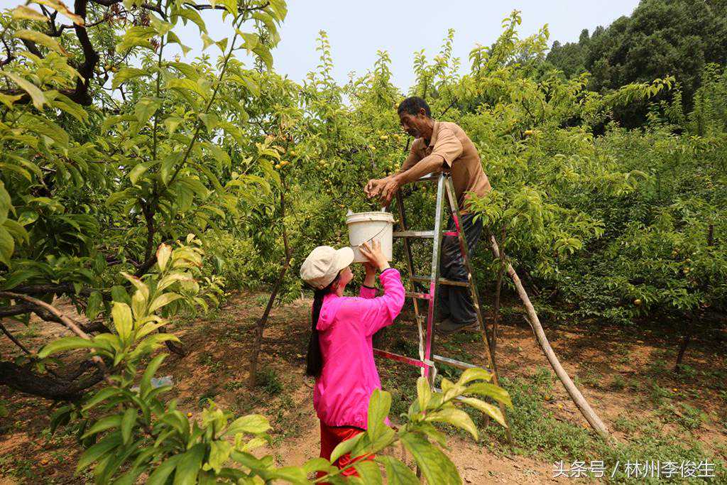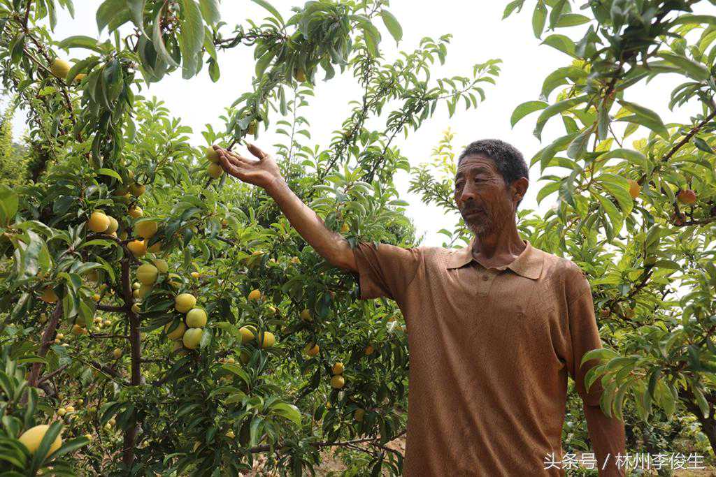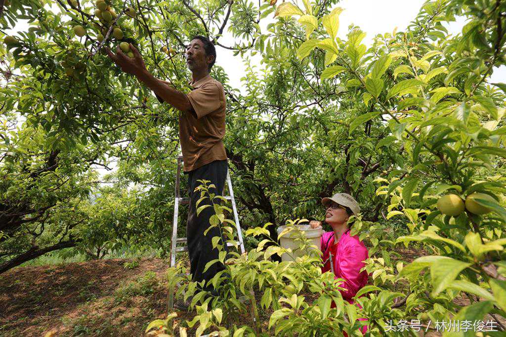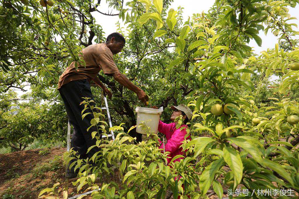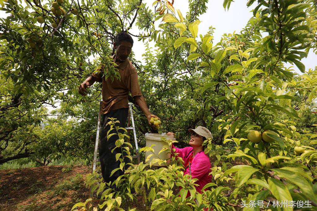 下图:拍摄于林州桂林镇三井村韩元生、郭全江的李子园。三井村韩元生、郭全江李子园占地60亩,1969年建园,其中2亩是有百年树龄的李子树,每亩李子产量3000斤,每年的李子平均价格在3元以上,百年李子树上的李子一斤买到过8元。