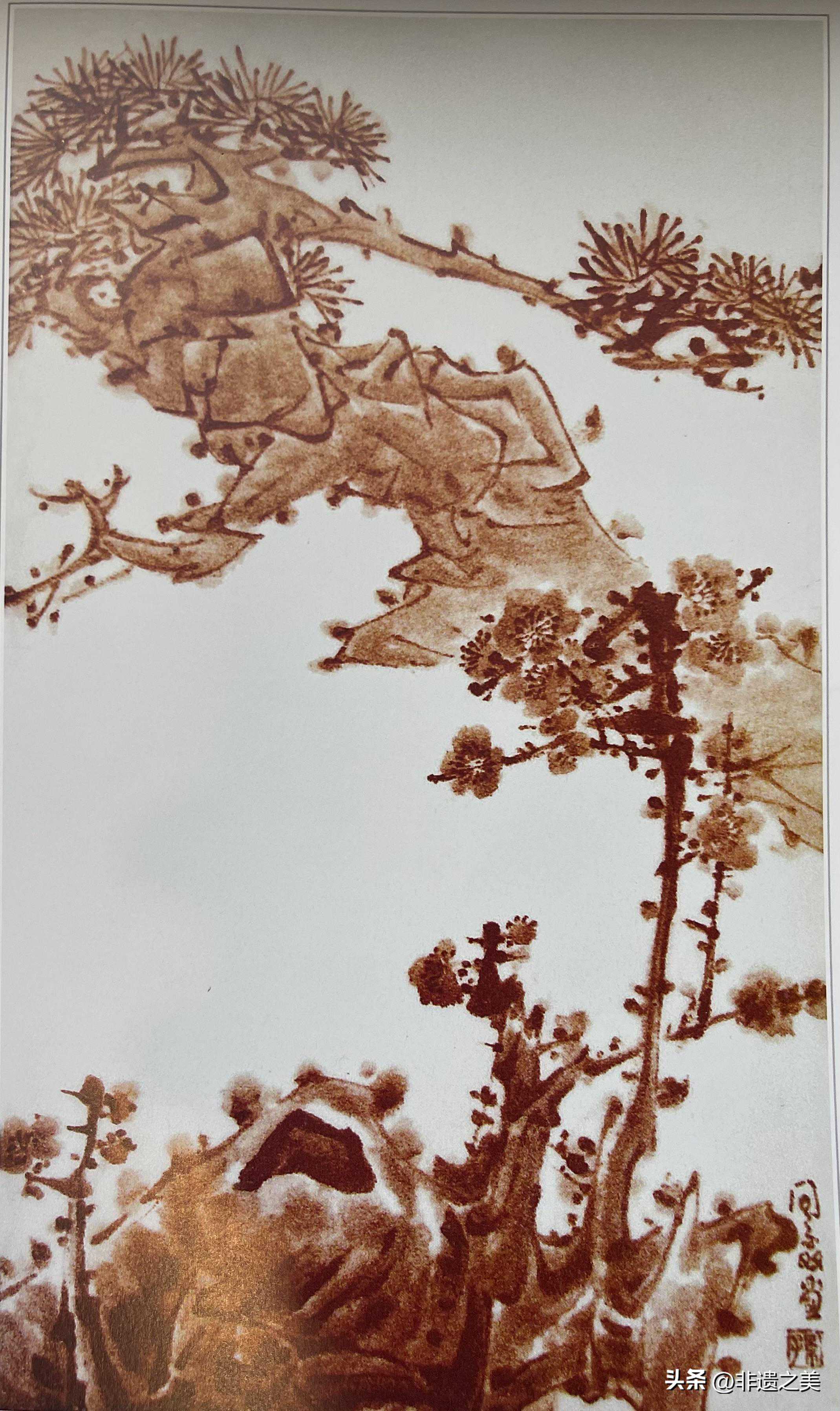 同时,孙同鑫也清醒地意识到,重复他人就等于否定自己,对于青花绘画艺术而言,明代发明的分水工艺,水份感比元末明初的效果强,逐渐有了水墨的韵味。明代以后的青花一般分为勾线、分水或者是先分水、后勾线的这两种操作模式。在他看来,用传统的线条、笔触方法和小面积分水技法,难以表达出想要的大视野、远效果,于是不断思考和实践,孙同鑫终于在1987年创造釉下“青花泼墨”技法。