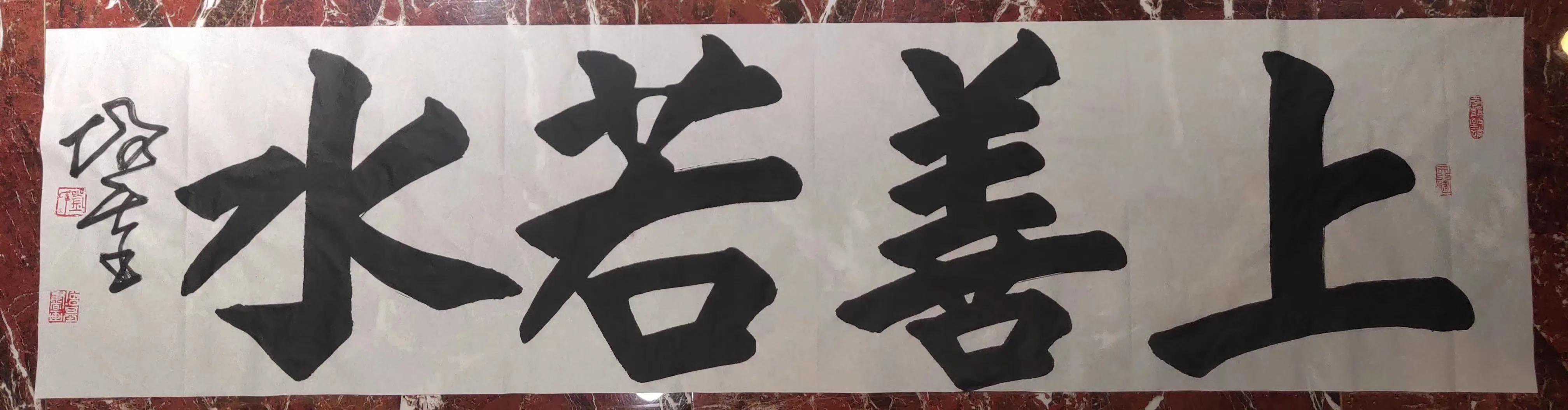 “上善若水”取自庄子的学说,善良是人性最美的一面镜子,而水是无迹可寻,它们之间的关系好比“如鱼得水”,有了相得益彰的效果!