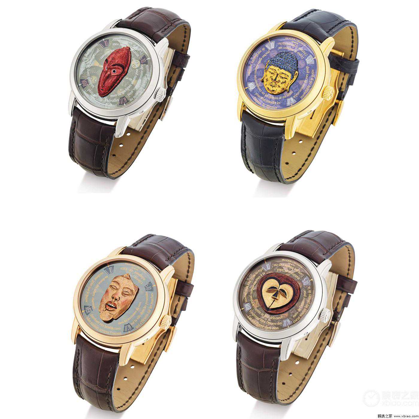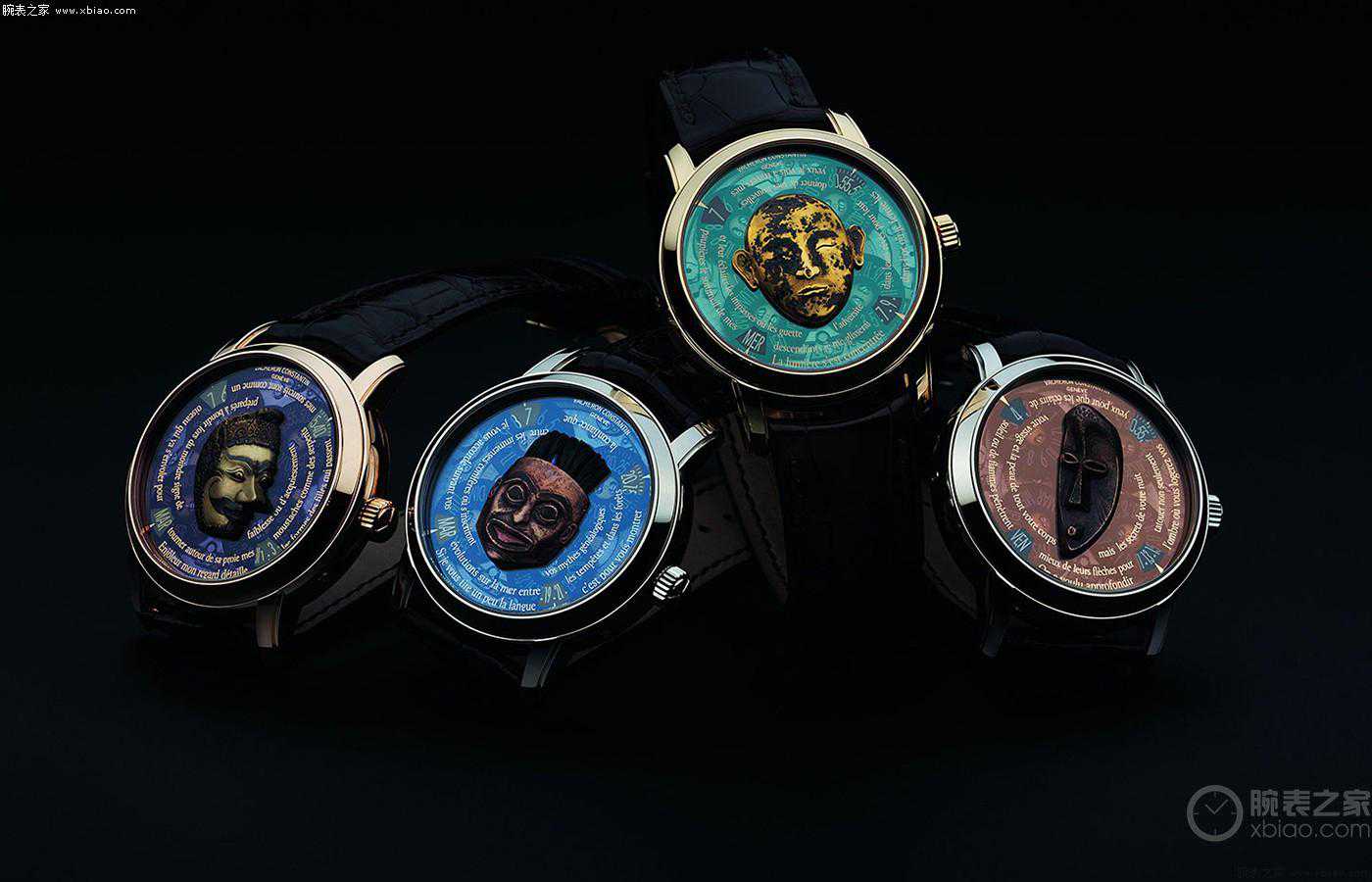 江诗丹顿在工艺方面非常厉害,面具是将是江诗丹顿从2007年到2009年3年间,每年推出4款面具手表(每款限量25只),3年3套共12种面具(总计300只)。江诗丹顿面具代表了亚洲、非洲、美洲、大洋洲四大洲的文化特色。比如2007年首套面具,分别是中国、印尼、阿拉斯加、刚果的4种面具。2008年是墨西哥、日本、加蓬、巴布亚新几内亚。这些面具都是根据博物馆中的真实历史文物进行微缩,可以说是把历史文物做到了手表盘面上。每套4只,不分家,一套公价600多万。