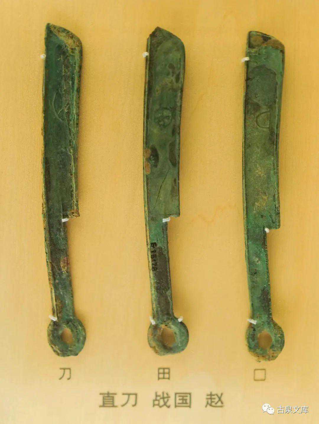 赵国铸造的圆首直刀陈列有三品,但仅展陈出背文,面文或为"白刀",铸行于柏人(今河北邢台市隆尧县):