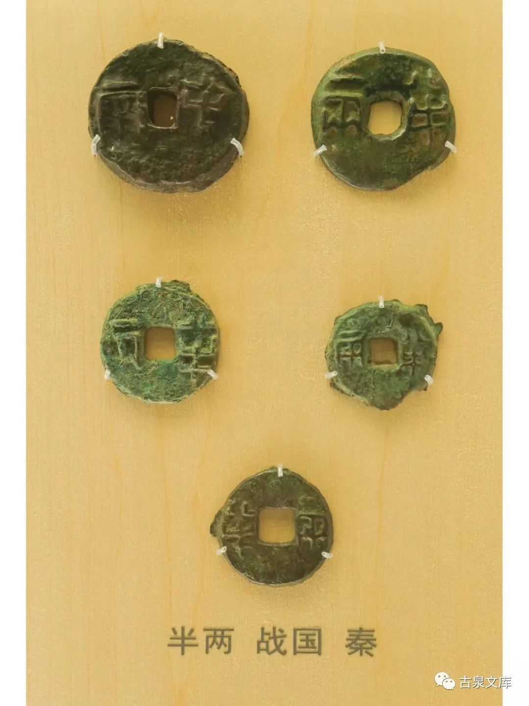 先秦半两,藏家多以重量论,其文字茁壮与否,更可称道。图中上排二枚重量分别为64克和25克,堪称半两钱中之极品。是钱由杜月笙之子杜维善先生捐赠,据闻早年为得到此二枚半两,杜老愿以一栋别墅换之: