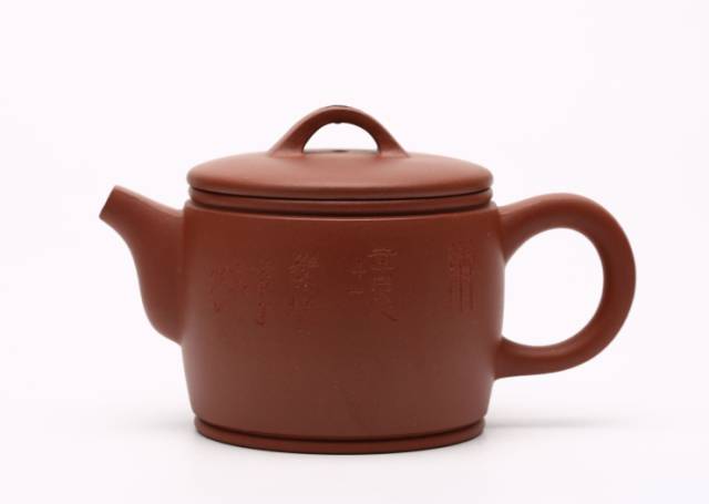 秦权:秦统一六国后统一了度量衡,“权”就是用来称量重量用的秤砣;“秦权”壶就是仿其外型。谁最早创制了秦权壶,无从得知。但晚清梅友竹与韵石合作,一如当年陈鸿寿与杨彭年的传奇。紫砂题铭,直追曼生,神采翻飞。“载船春茗桃源卖,自有人家带秤来。”桃源卖茶,以壶为秤。充满了想象的意境和潇洒不羁的情趣。