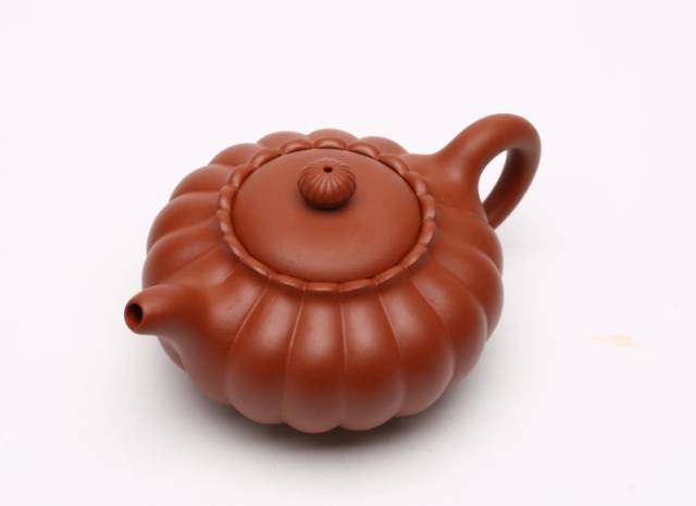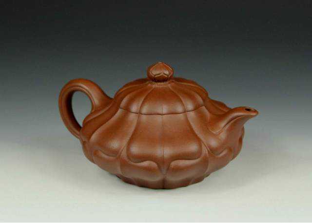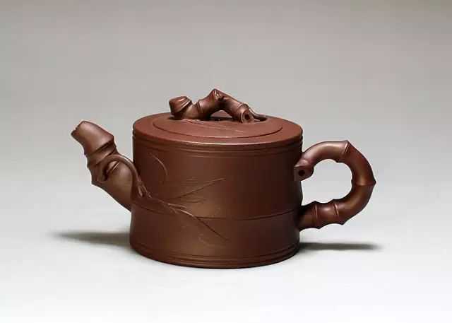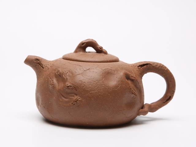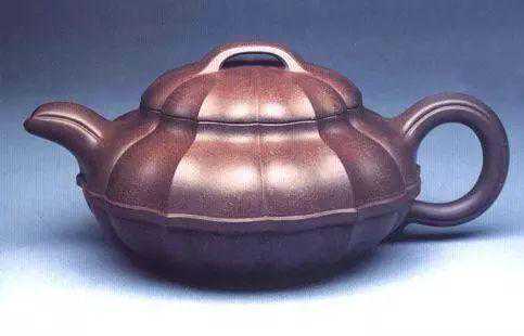 “南瓜壶”,以瓜形为壶体,瓜柄为壶盖,瓜藤为壶把,瓜叶为壶嘴,构思巧妙,雅而不俗,陈鸣远作传世品现藏南京博物院。