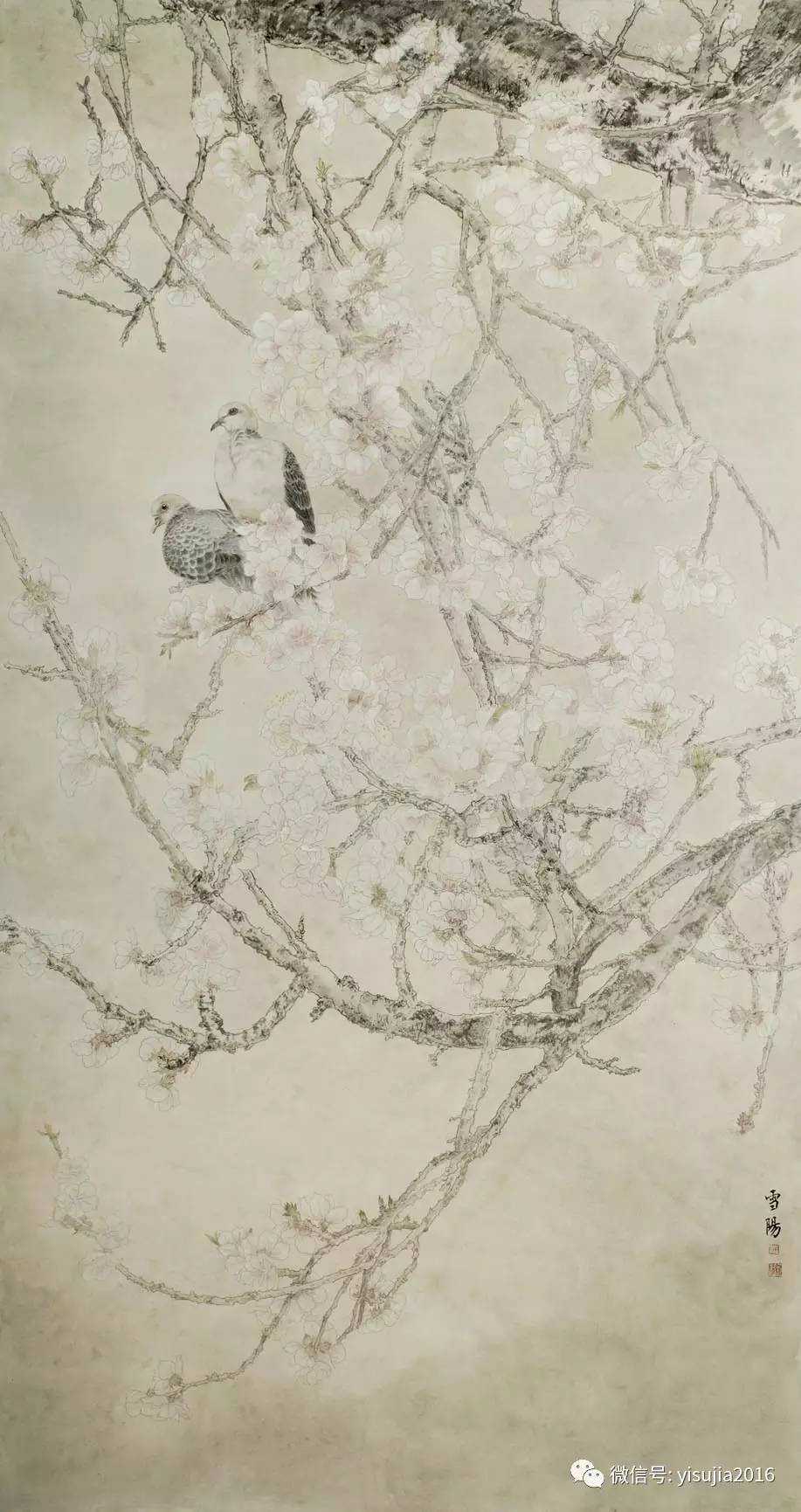 花草无言,承载了绘者的性情和志趣,含放盛衰、孤群悲喜,每个人眼中皆不同。女画家独有的细腻婉约,伴随庄雪阳天生敏锐的感知力,令她无分别心对待着自然物象的启发,瞬间凝聚为永恒,一笔一墨都焕发出诗意而温柔的韵致。同时又不拘泥于女性的小情小调,工写兼容,保持着整体的大气和灵动。“工笔重彩的难点之一是容易太僵硬,或者颜色特别浓,其实是跑入了误区。对于工笔画来说,还是要有写意性在其中,既有工细又有松动,这也需要长时间的摸索才能拿捏得住。”注重颜色的高度和谐,而非色相与口味之重,她以“写”的精神展现形象内部的生命,作品也就注入了充沛的活力。