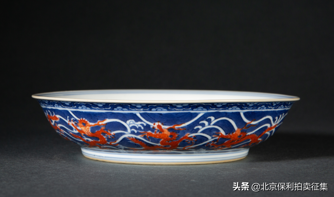 清乾隆青花矾红海浪九龙盘