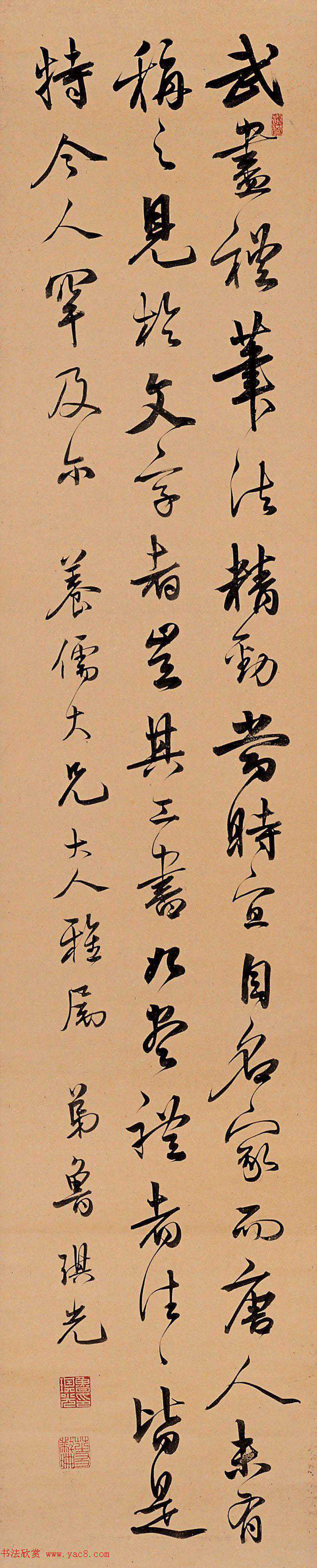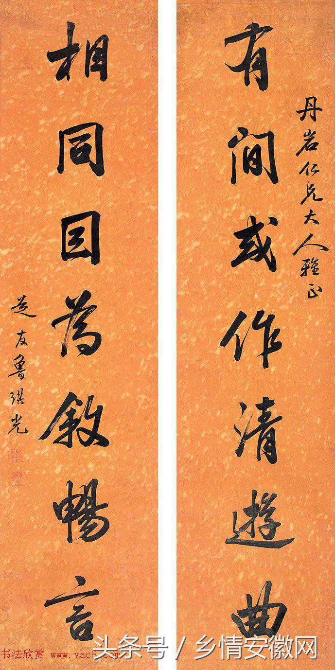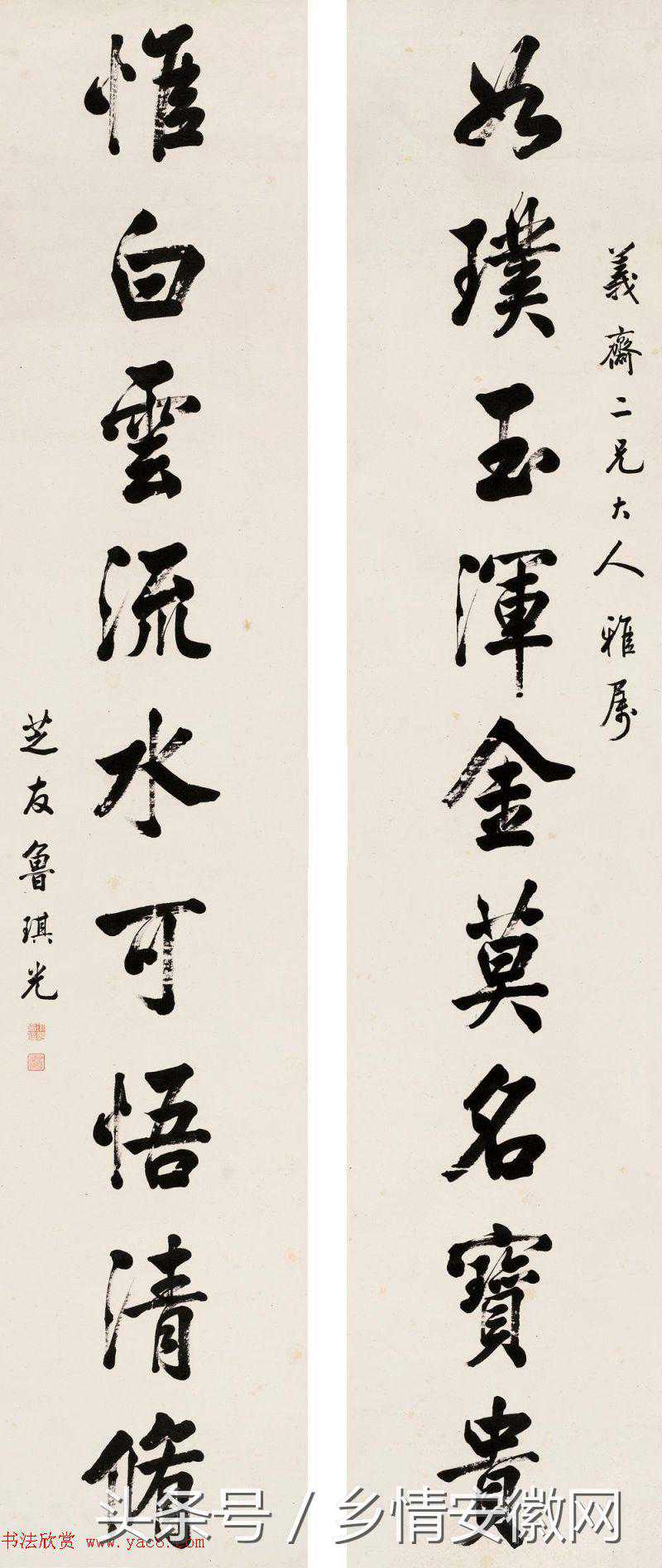 鲁琪光(约1828~1898),字芝友,号黻珊。江西南丰人,同治七年(1868)戊辰科进士,散馆授编修,旋补陕西道御使,授山东登州知府,并署登莱青道,调补济南知府。文章道德,冠绝一时,尤其擅长书法。以欧阳询之遒秀,兼米芾之姿致。乞书者积纸盈屋,日挥数十幅,未尝厌倦。规模伪托者不绝,然真赝易辨。在翰林院供职时,索书者摩肩接踵,络绎不绝,竟然连朝鲜、日本人士都以得其零缣片楮而争相宝贵。晚年书法更臻化境,珠圆玉润,雍容华贵,收藏家们争相鉴赏珍藏。先生乐善好施,那些生活窘迫的故旧,招揽奉养常达数十家;相识与不相识的江西老乡,只要是求助于他的,无不挽留幕下提供食宿,故而居官三十年,却依旧清贫如洗。