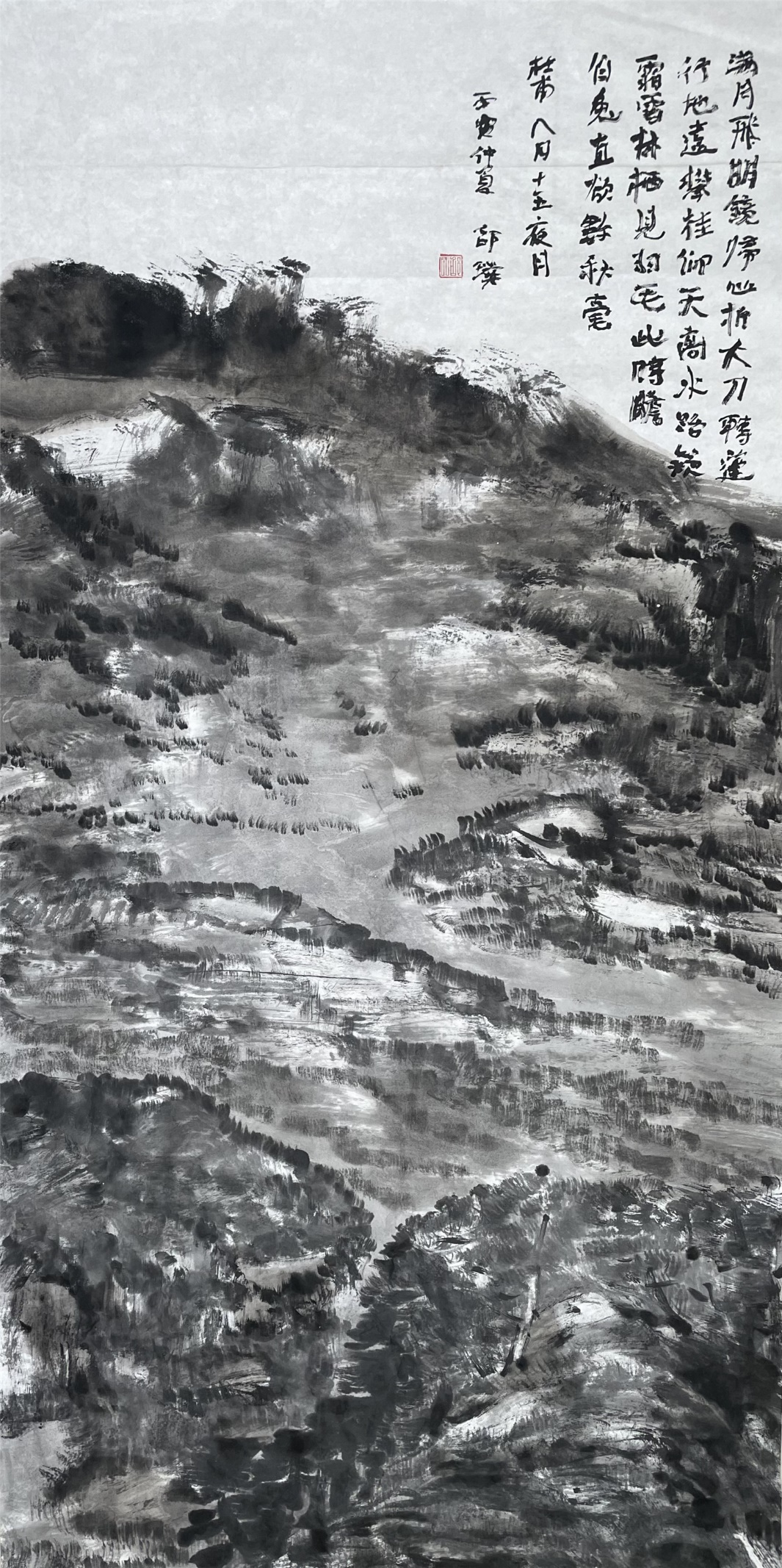 这片灰曾偶现在张仃的作品中,其夫人惊喜之余,誉之”银灰”。及至后来的探索者邵璞,以迷人的一片灰为其焦墨主调,大面积甚至整幅地呈现。著名画评家陈履生赞许说那是一种”灰调子”,”呈现特别的味道”。