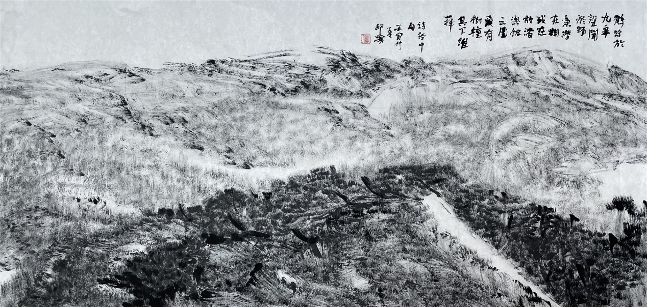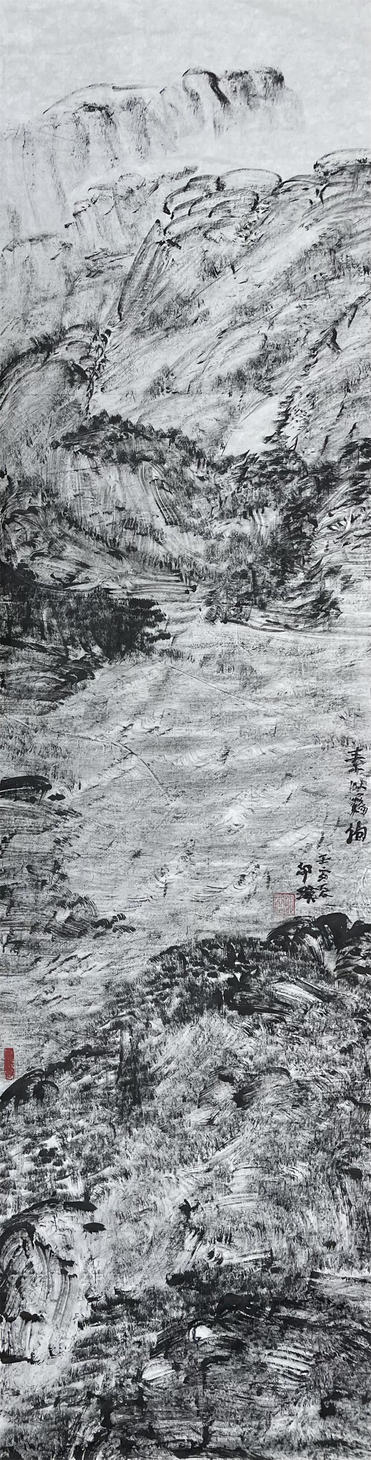 无论从创作实践,还是从赏画者体验的角度观察,这都像是一场巨大的变革,山雨欲来风满楼。在这股潮流的推动下,国画有望呈现一种全新的样貌,凤凰涅槃,再迎新生。此后画家或不再靠单一的线条去写,而以线阵来结构一片迷人的灰。墨分五色也不再单以笔墨的浓淡来实现,而可以在这片迷人的灰里进行五色的细分。这种笔法上的创新,不是靠加法,而是靠减法取得,从这个意义上讲是一种返璞归真。在这个新的、线阵灰的平台上,画家的功力或将经受新一轮的严酷考验。而于赏画者而言,或已无需再墨守成规,尽可畅享迷人的一片灰带来的愉悦的审美体验,发现原本应有、不曾得见的美。