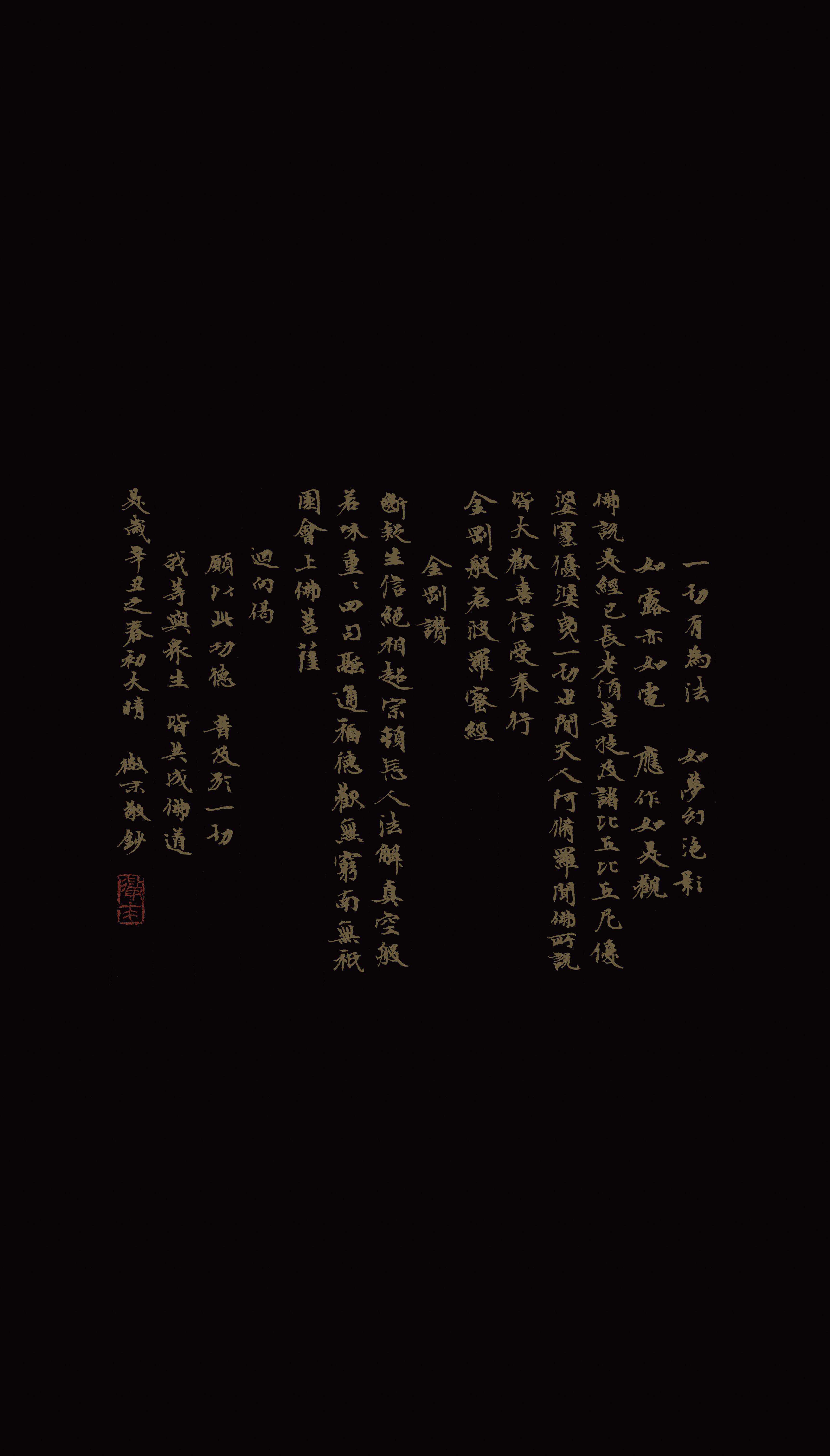 若从后者讲:据我的了解,从柳公权算至清代康熙、雍正,中间有苏东坡、赵孟頫,董其昌、傅山等他们抄写的经卷(金刚经》却非常令人失望,虽然他们本人无一不是当时的书法大腕,但遗憾的是,他们有个共同点就是:把经当书法写了?我现在所呈现的,但愿能在这两端之间,无所偏倚,却有所灵化!