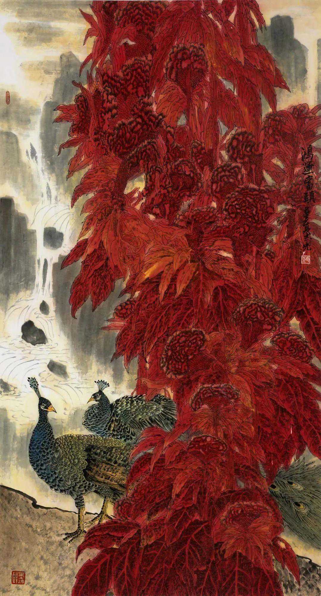 当代著名画家冯志光先生,站在传承丹青文化的层面,执笔墨作花鸟,远离丹青戏墨的小家子气,用浓墨重彩表现花鸟的气韵非凡,再经过骨法用笔的塑造,兼工带写,水墨色彩均精神,让他的花鸟画在当代画坛独树一枝!