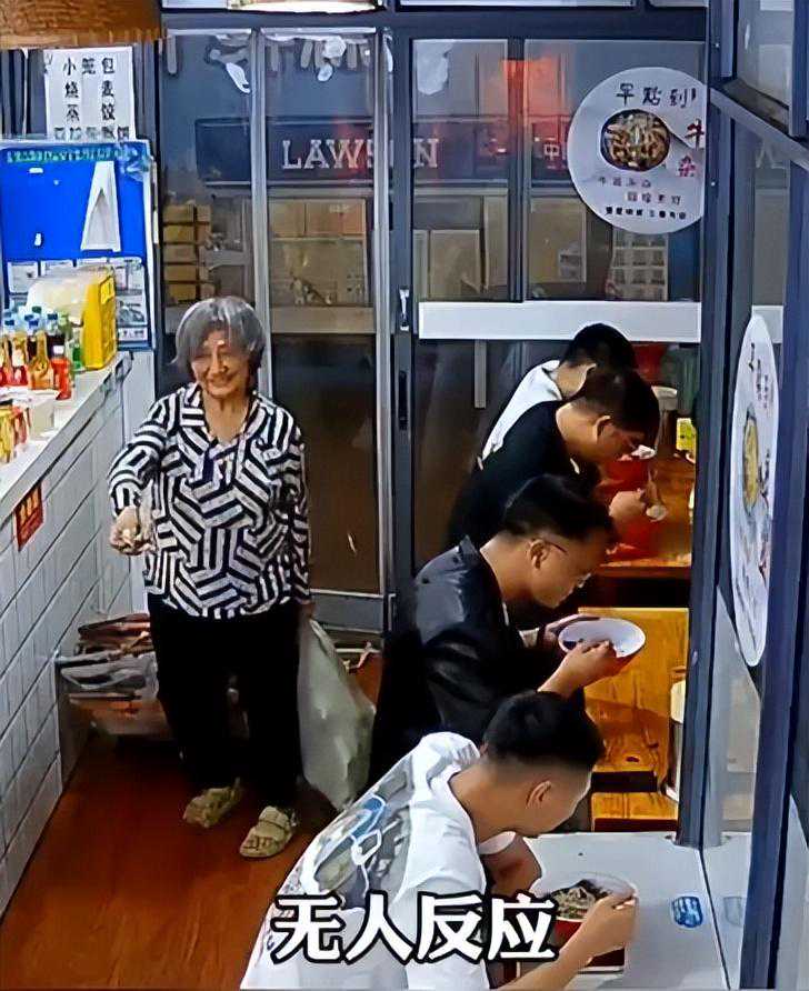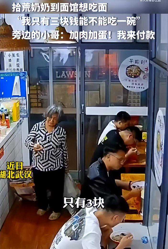 拾荒老人拖垃圾进店,拿3元吃面没人理,顾客一个举动让老板脸红