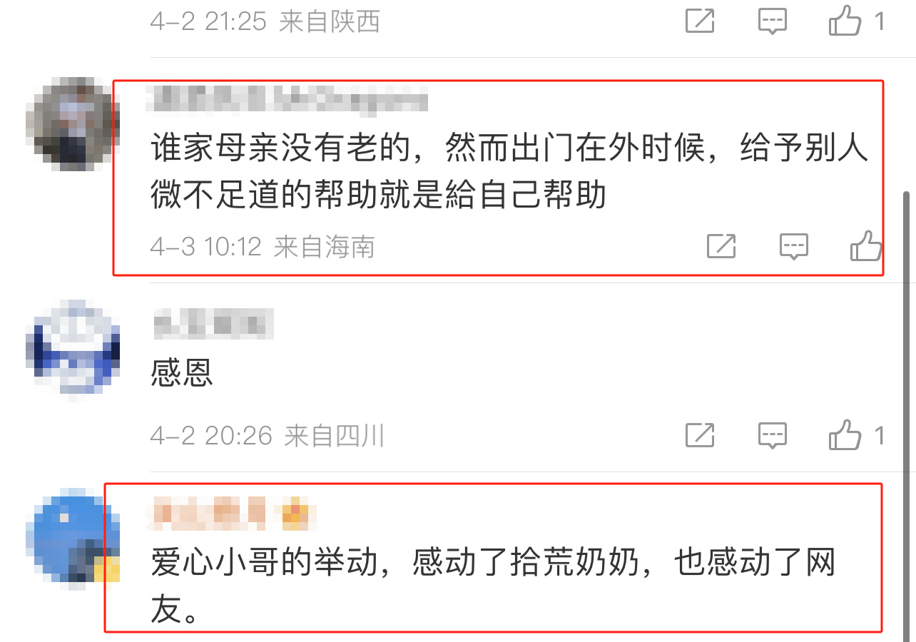 “谁家母亲没有老的,然而出门在外的时候,给于别人微不足道的帮助就是给自己的帮助。”