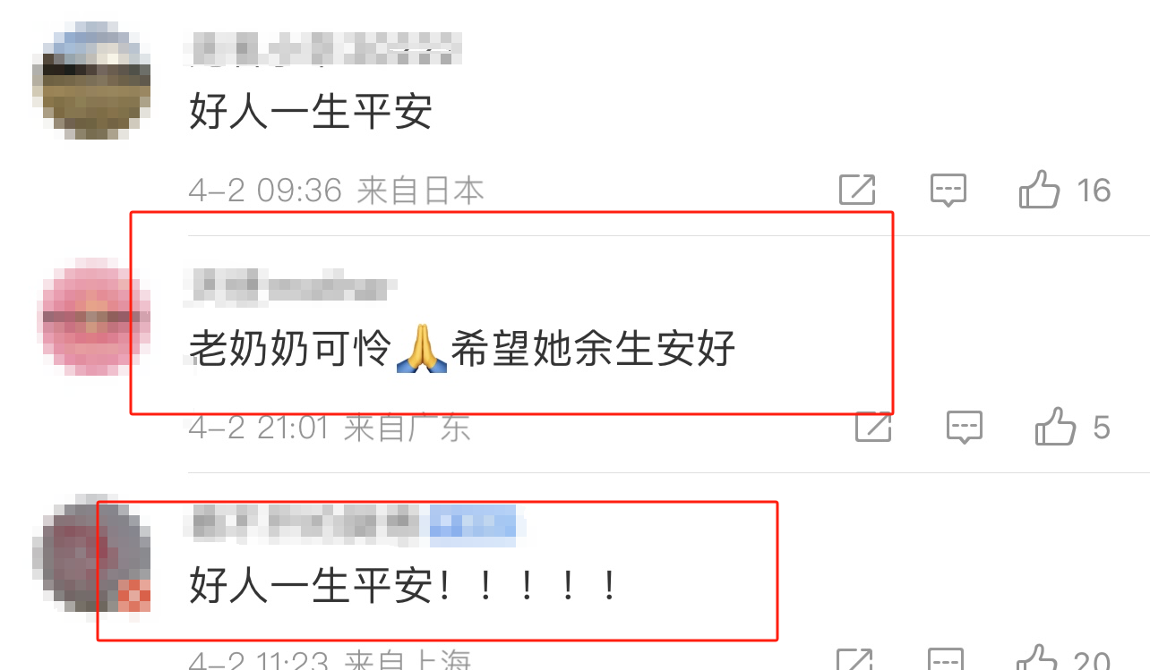 “老奶奶好可怜啊,希望她一生平安。”