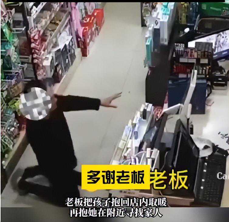 老板见状赶紧把小女孩抱进了店里,抱到怀里的那一刻发现小女孩的身上有凉意,但是店里也没有多余的衣服,老板便用自己的衣服包裹住了小女孩。
