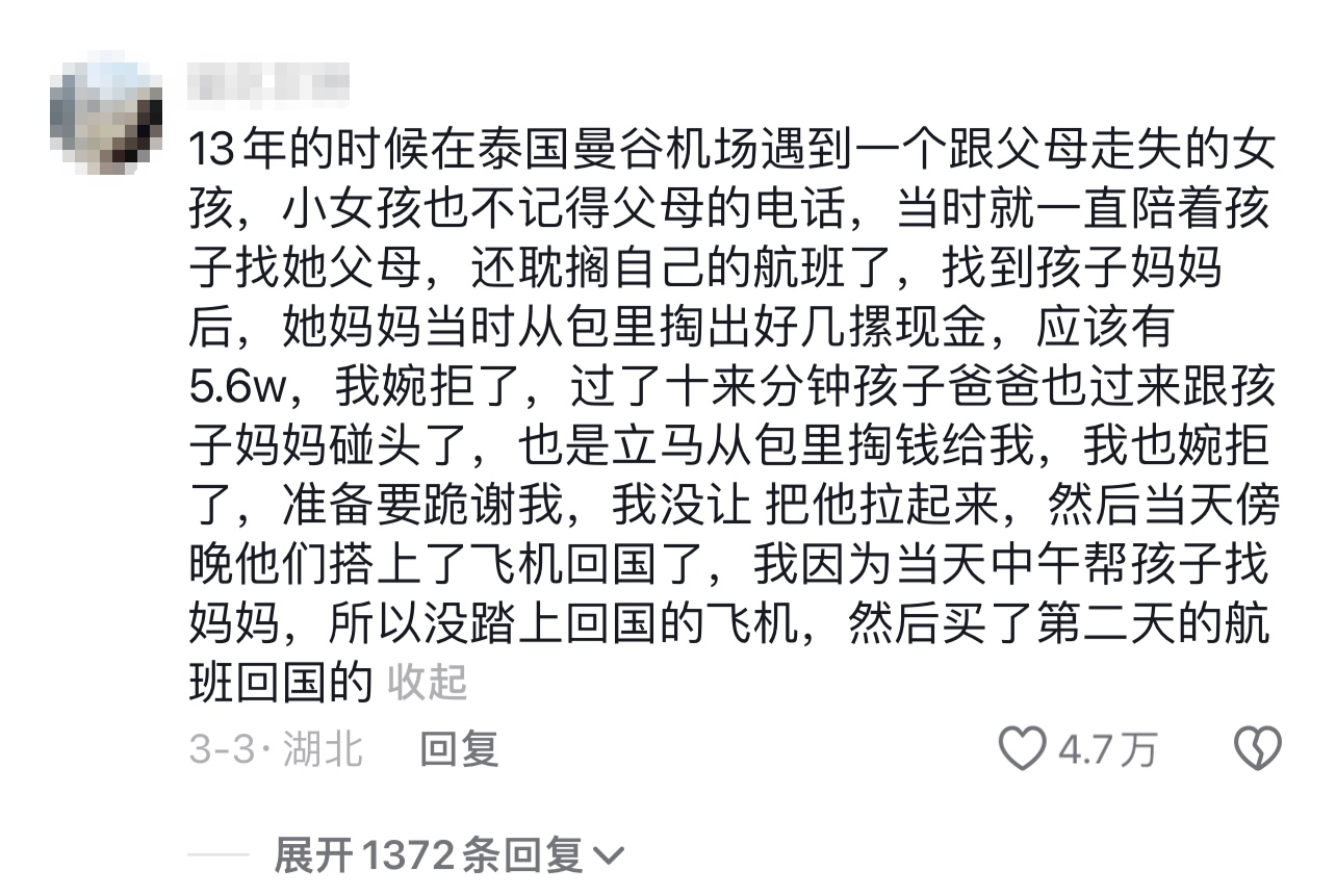 网友说道,在国外机场的时候,遇到了一个跟父母走失的小女孩。