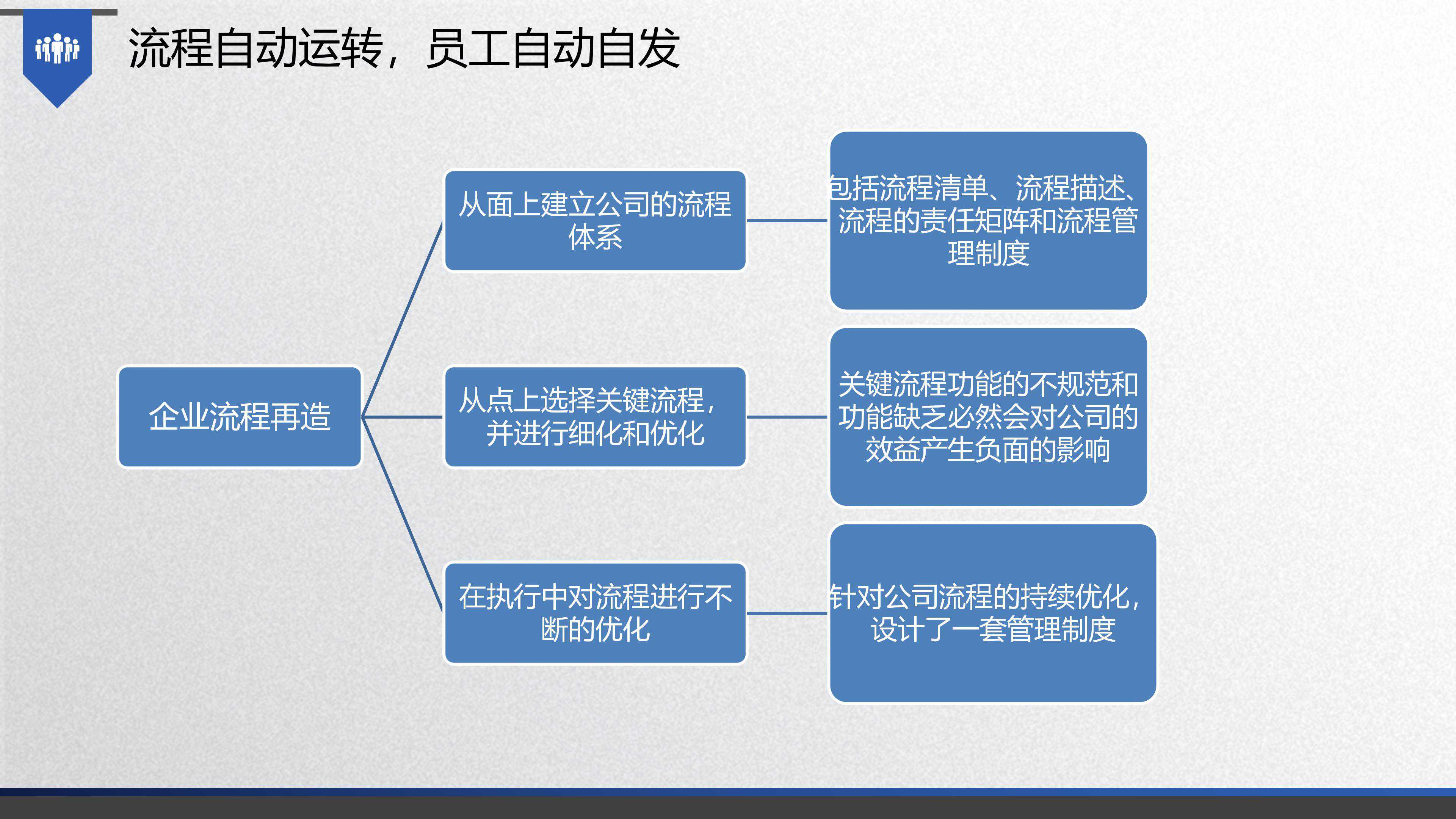 企业管理主要管的是人和事,人是岗位,事是流程。而流程又牵涉企业管理的方方面面,既与企业的战略相关联,也跟企业的每一位员工的具体工作相关联。
