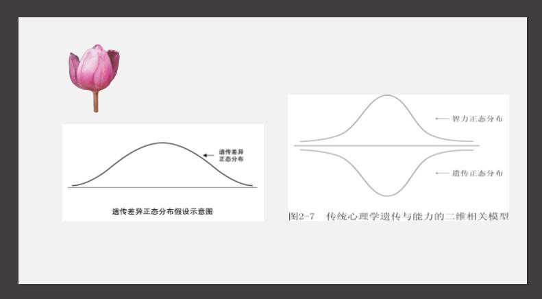 所以我们就是要建立一个很简单的模型,承认遗传存在着差异性,个体和个体间存在差异性,但是遗传的差异性小于环境的差异性。一个基本逻辑就是人类是共同品种,共同品种的巨大环境与不同物种所面对的环境相比差异要小的,所以我接受遗传存在差异的逻辑,但是集中度更高,离散度更小,环境离散度更大。