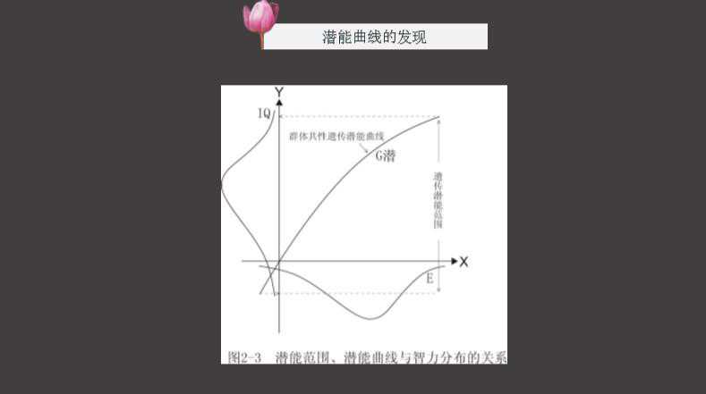 其实看这条曲线,他在Y轴上的投影。正好跟我们群体差异分布的范围是一样大的。换句话说就是我们看到的人类差异的空间或范围,实际上是我们每个人曾经有的潜能范围。这样一个逻辑的得出,实际上对于教育而言责任重大,它改变了近100多年心理学的公理,改变了千百年来人们关于差异的认知,当然对后期更深刻的思考会更多。