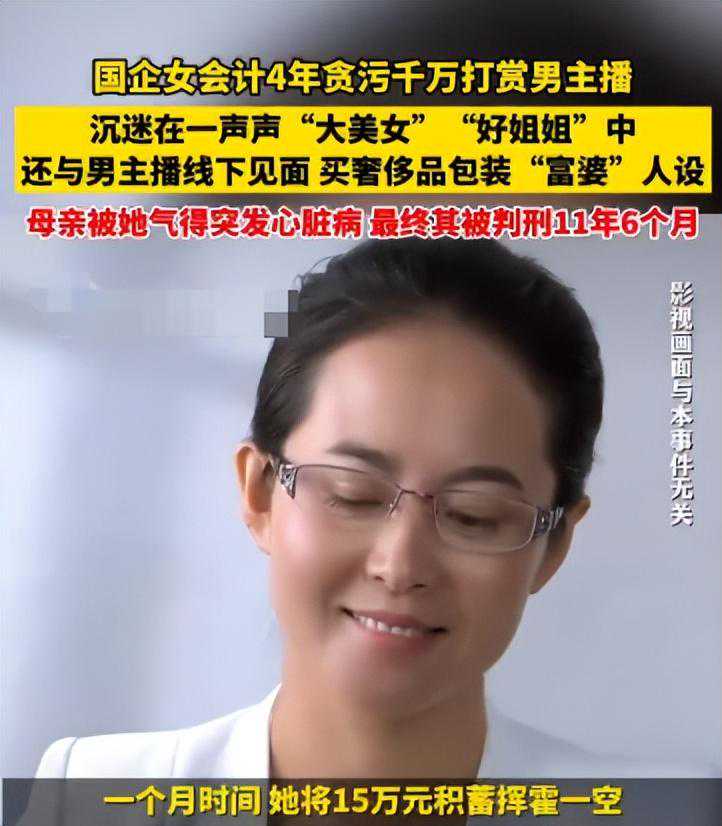 近日,33岁的国企女会计4年挪用千万公款来打赏男主播。