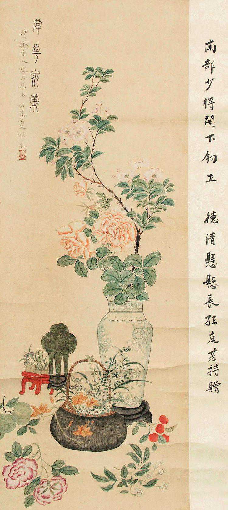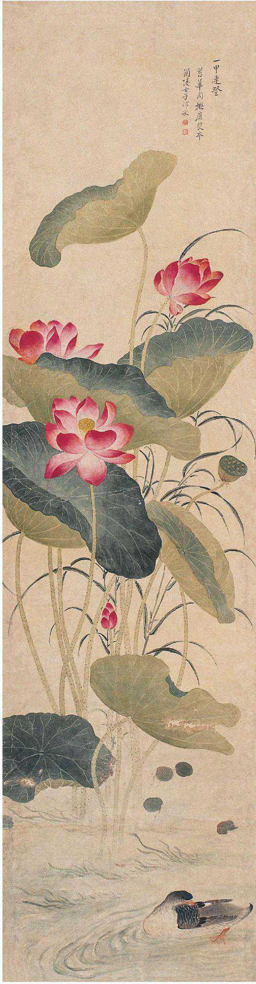 恽冰,生卒年不详,清代著名女画家,活动于清熙中期至乾隆初期,字清于,武进(今江苏常州)人。清初画坛“四王吴恽”中恽南田家族的后裔。她自幼潜心于花鸟画创作,不仅整日观摩家中所藏恽南田的画作,掌握表现技法,而且常观察房前屋后的花草、虫蝶,从中汲取大自然赋予的创作灵感。成年后,嫁同郡毛鸿调为妻。清吴德旋《初月楼续闻见录》记载他们“筑小楼,夫妻吟诗作画以老焉”。婚后良好的文化环境有助于恽冰的艺术日臻成熟。他与以擅勾染闻名的马荃合称为清代女性画坛又绝。基花鸟画注重逼真写实,造型生动传神。花瓣常以水墨着色晕染,通过灵动多变的用笔,把墨、色与画中的形象完全融为一体;茎枝、叶筋以娴熟的笔力一笔勾就;叶片注重阴阳向背的处理关系,颇具立体感。恽冰存世的作品很多,有故宫博物院藏《蒲塘秋艳图》、《华春双艳图》、《南山佳色图》、《紫藤月季图》、《紫霞朱帐图》;上海博物院藏《春风鸜鹆图》及广州市美术馆藏《南山秋艳图》。