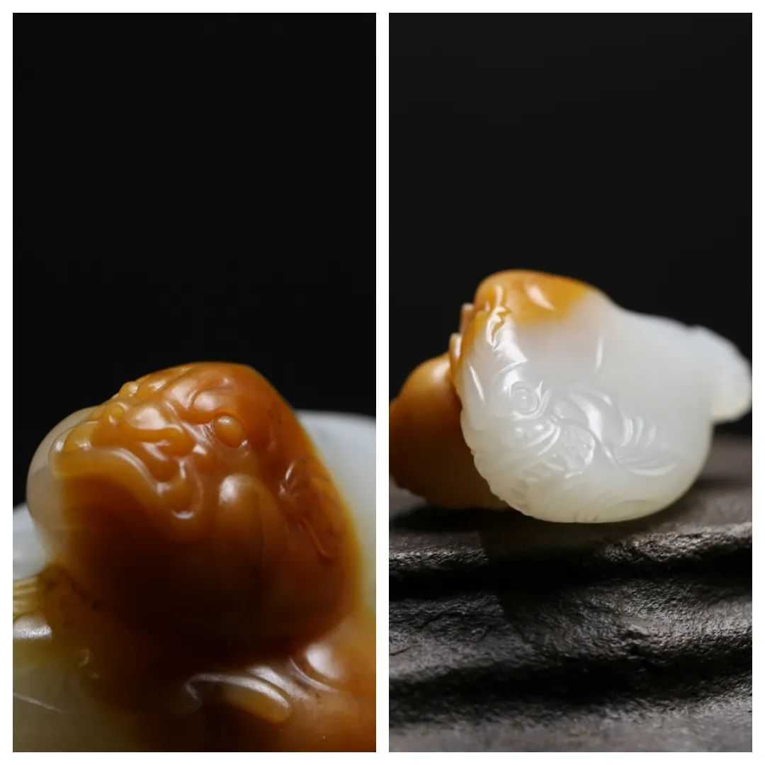 籽料皮色艳丽、玉质油润细腻。