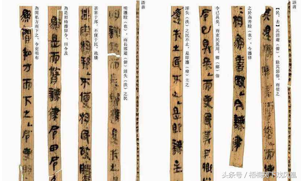 竹简上的法条,是喜生前从事法律工作而抄录的有关法律文书,总共有1100余枚,统称为“睡虎地秦墓竹简”。这些竹简录有秦国刑事、经济、民事和官吏管理的法律条文,弥足珍贵。