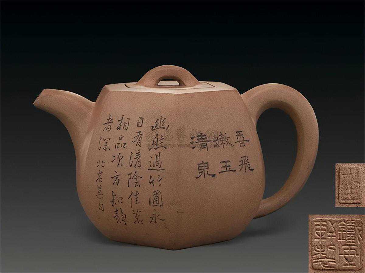 可见时大彬在紫砂界有多受欢迎,在壶上镌刻诗文然后落上“少山”款识,成为制壶时尚。