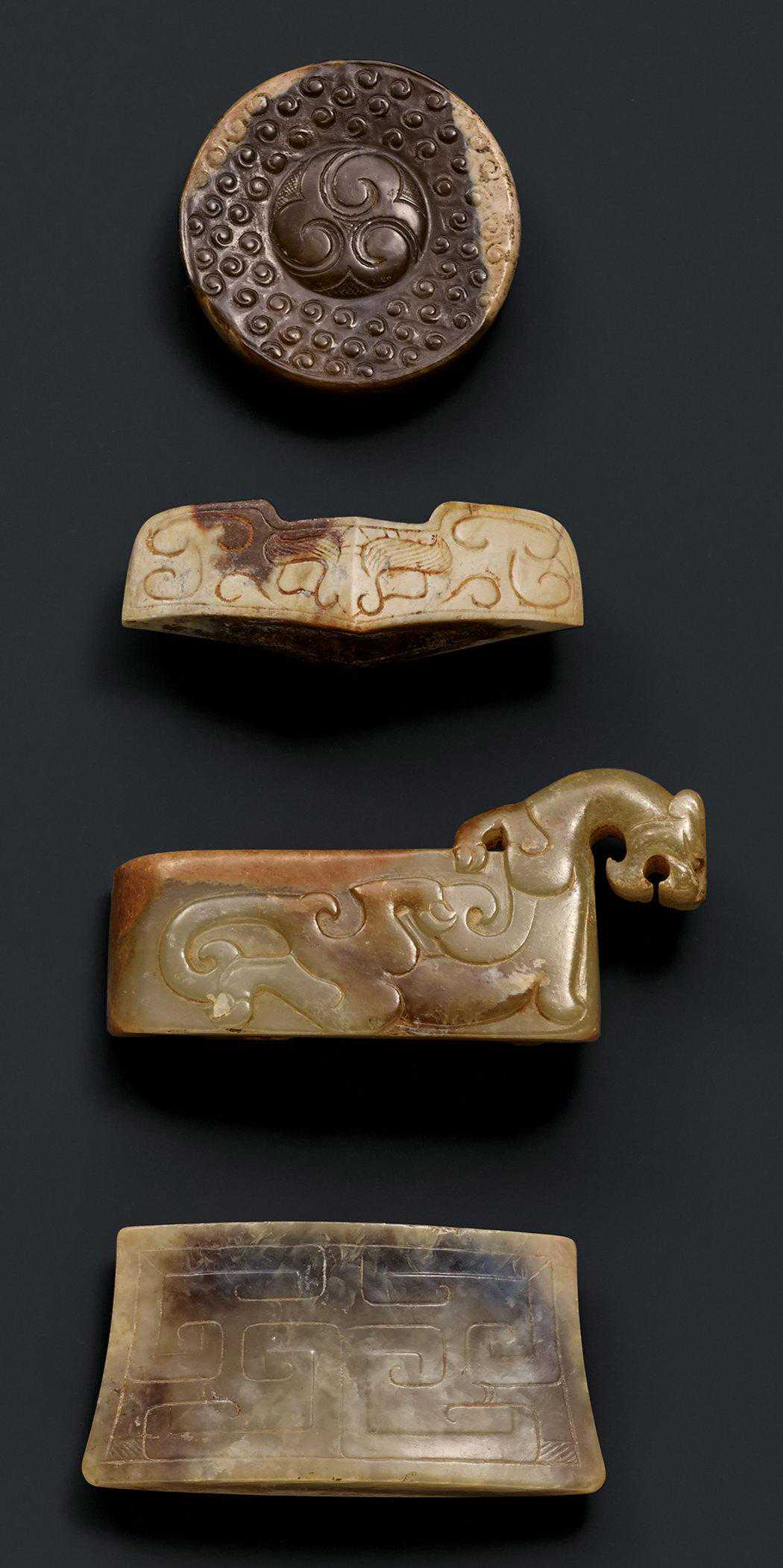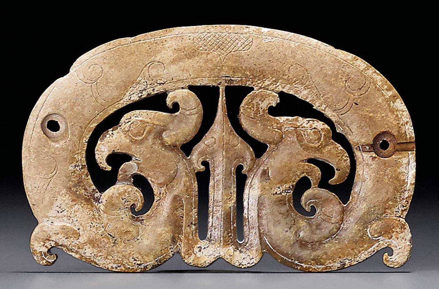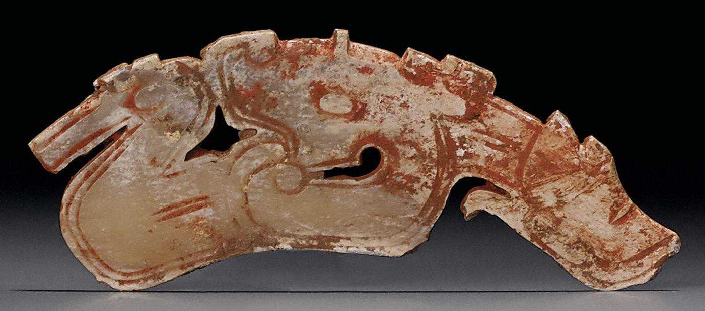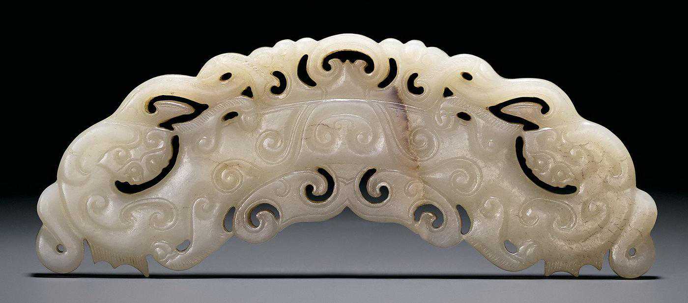 东汉时期,由于政治动荡,玉璜作为礼器制作规模和数量渐衰微,此时玉璜,开始与玉觹、玉韘一起,逐步变形为佩。