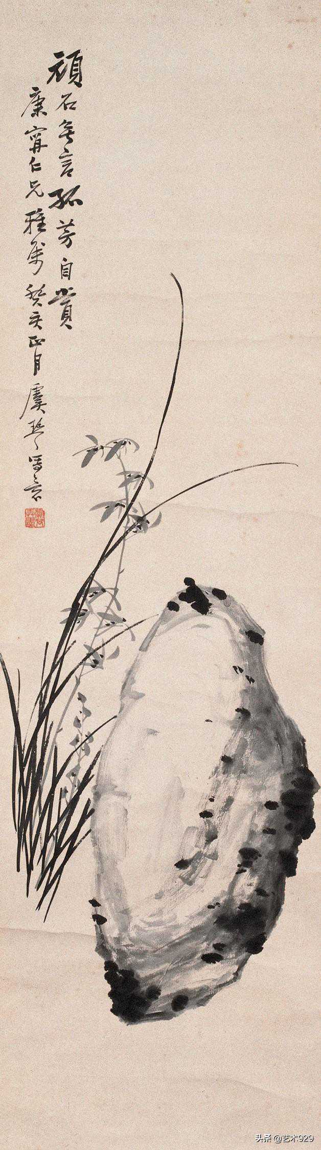 吴昌硕姚虞琴合作水墨兰石图轴,1921年作,现藏于浙江省博物馆