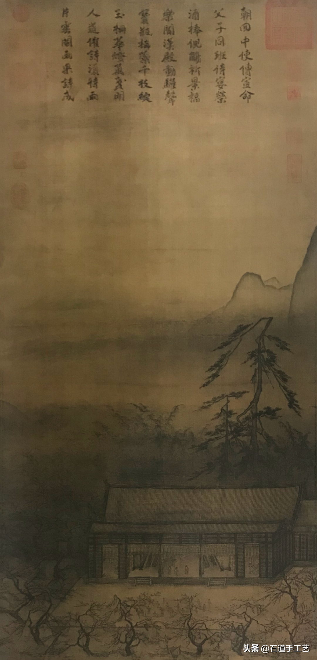 马远,南宋光宗、宁宗朝画院画家。这幅自然人间浑然一体,堂内侍宴,阶下执灯起舞,屋外丛梅、远山呈现于苍茫夜幕之中。中国水墨画写实在此得到深化,表现自然诗情画意。是南宋时代的代表。