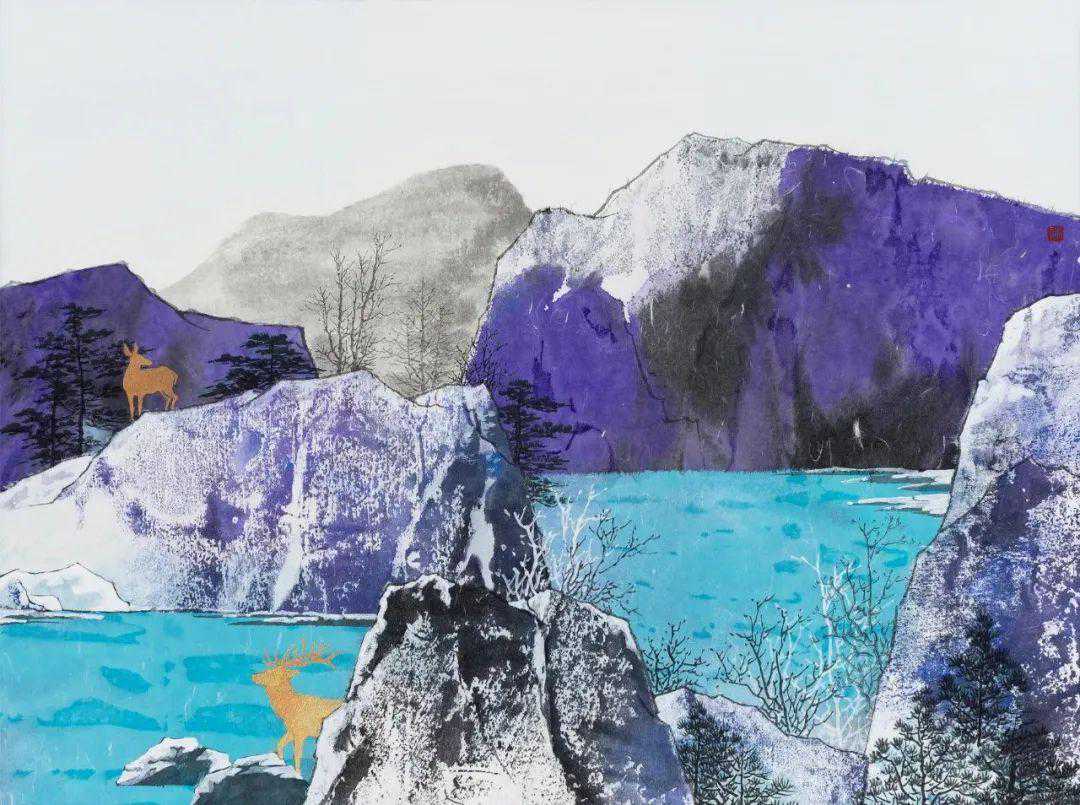 《鹿王本生——雪国1704》47纸本重彩2017年