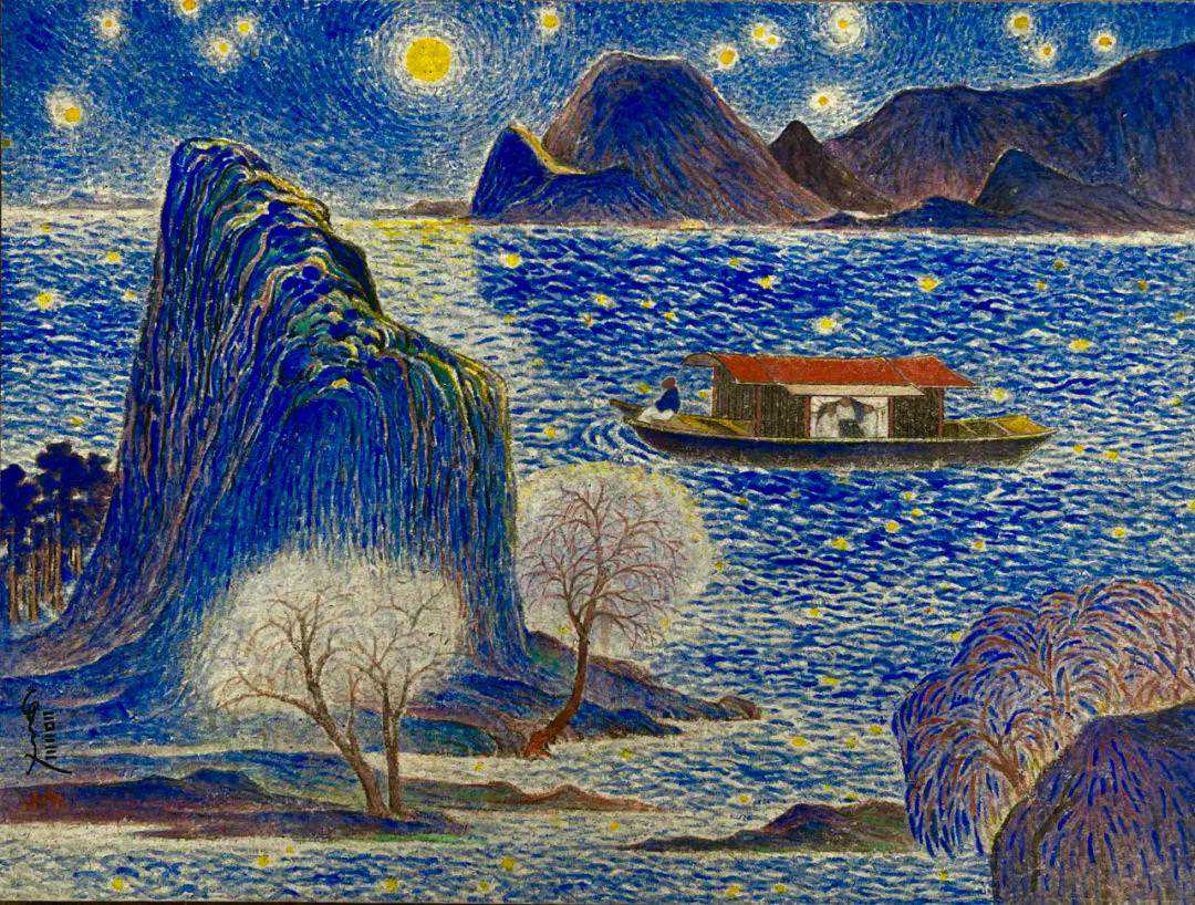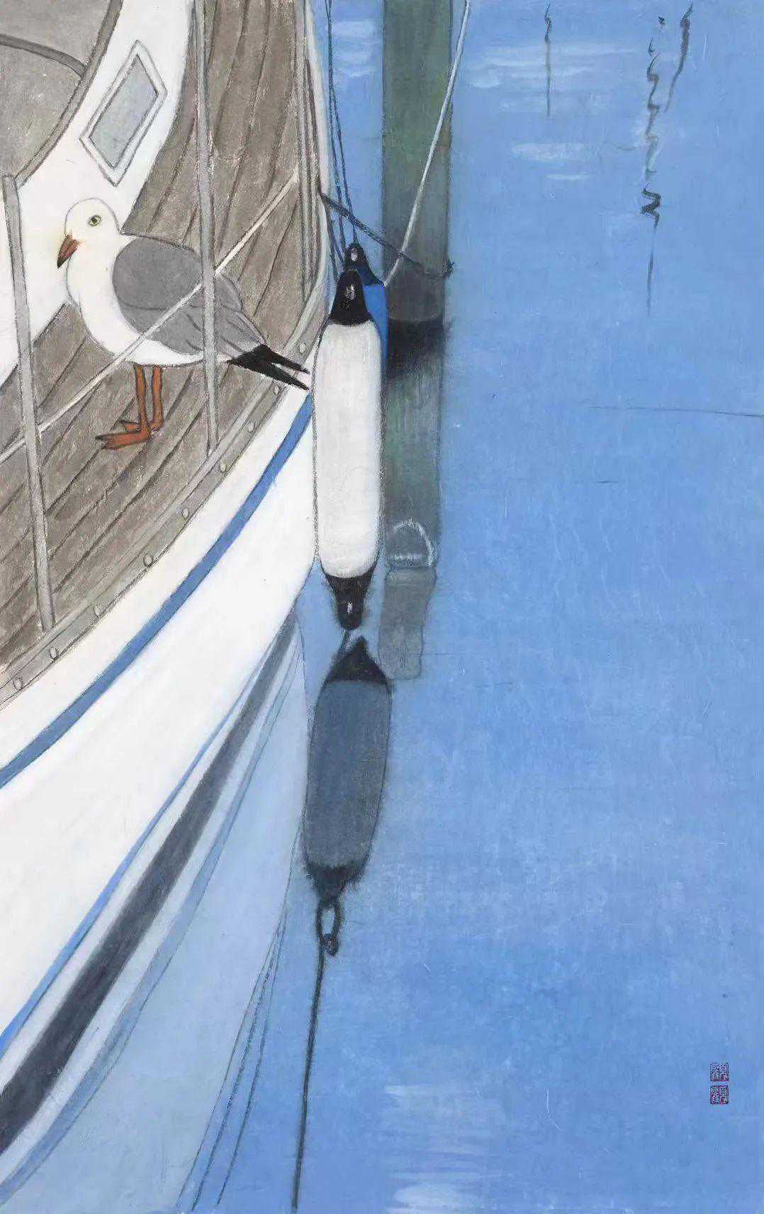 《夜行船》45cmx60cm麻纸石色2023年