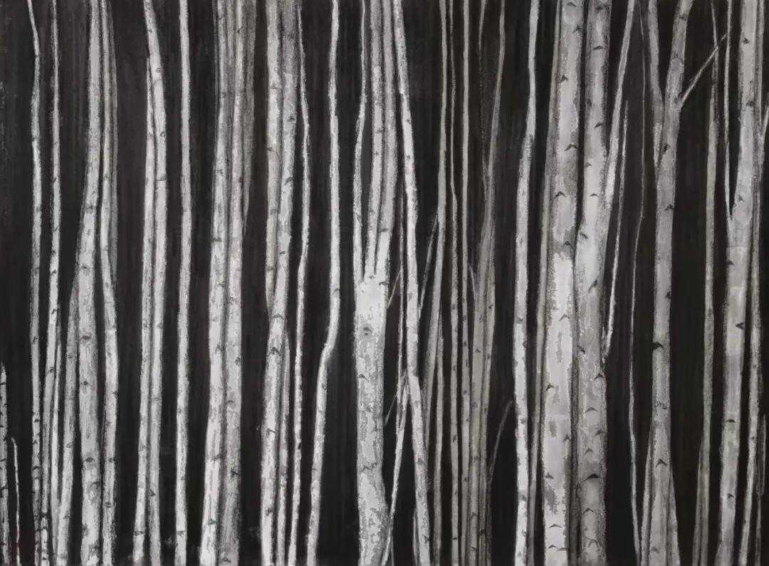 《早春桦树林》45cmx60cm绢本设色2023年
