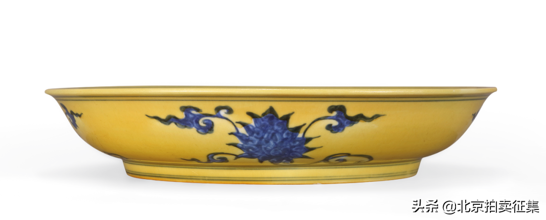 明正德黄釉地青花折枝石榴花盘