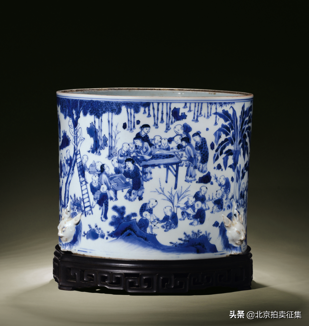明崇祯青花百子图大笔海