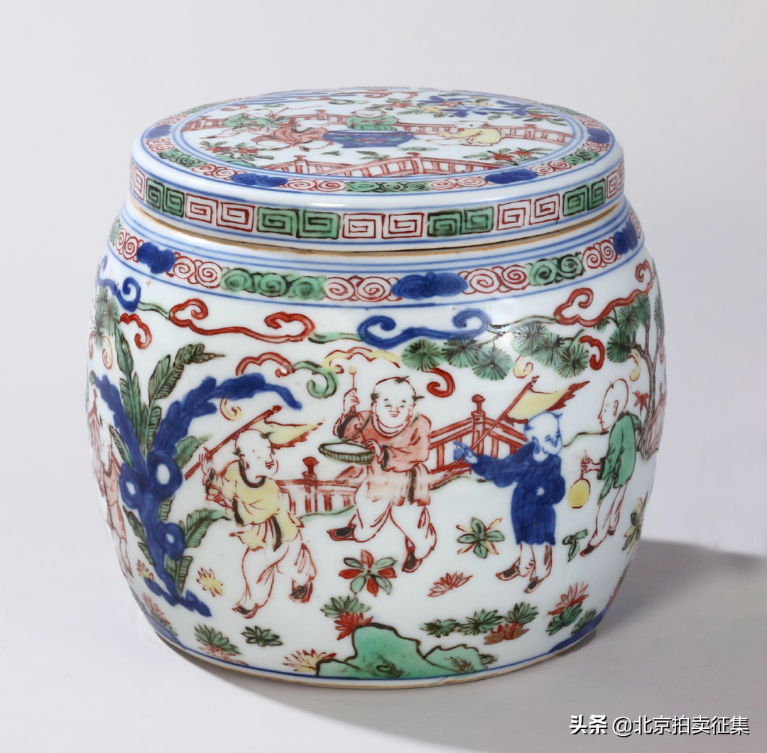 明万历青花五彩婴戏图围棋罐
