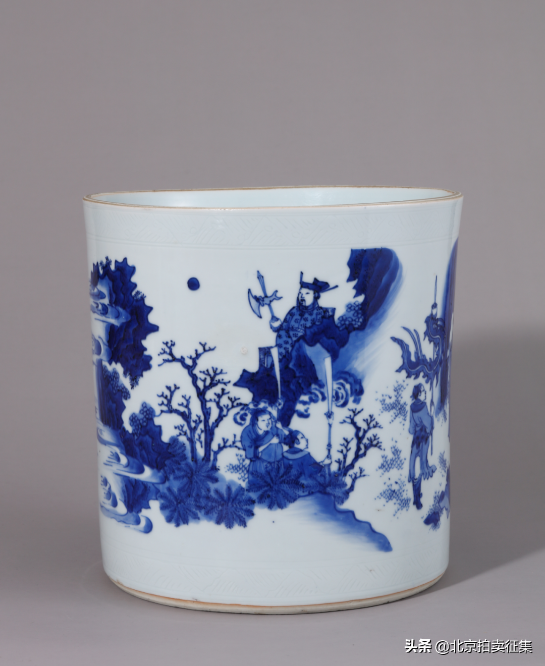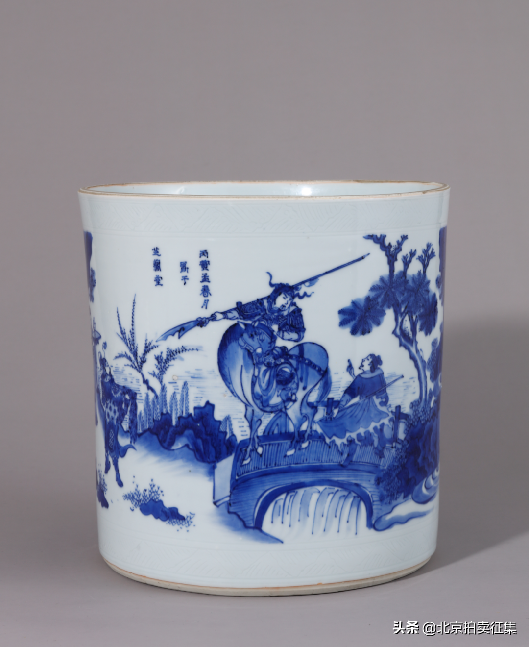 明天启天启六年青花三国演义图大笔筒
