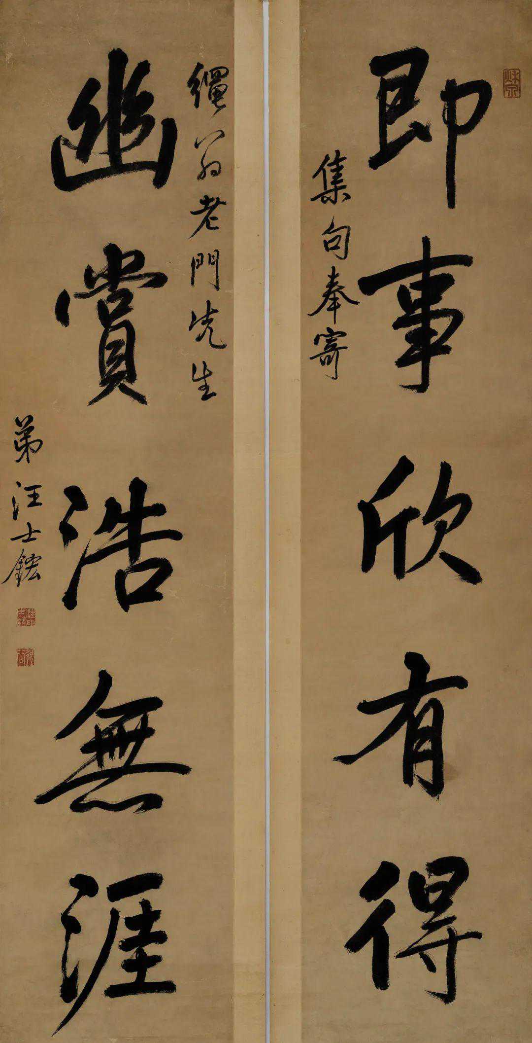 释文:即事欣有得,幽赏浩无涯。集句奉寄,绳翁老门先生,弟汪士鋐。