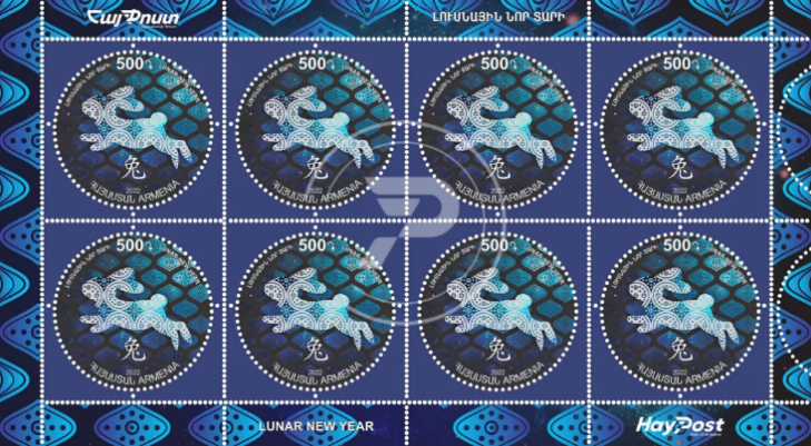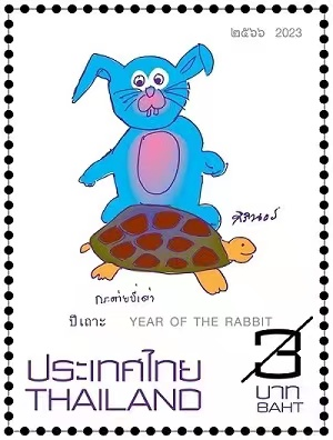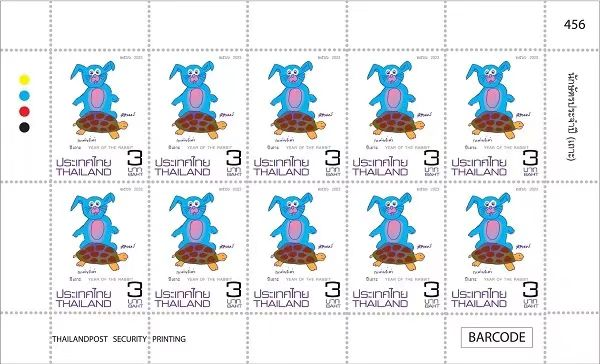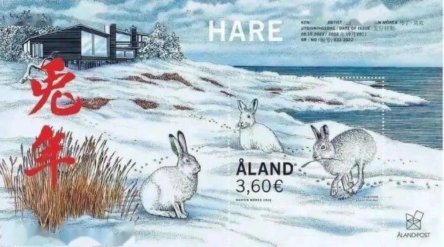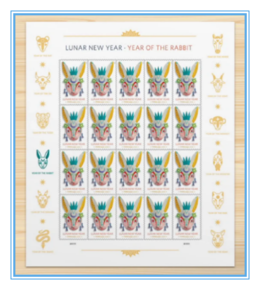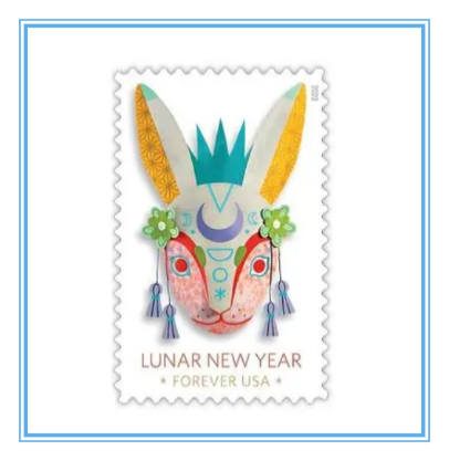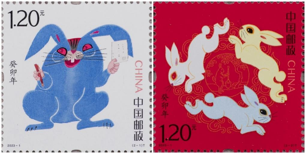 今年,中国邮政发行的“兔票”同样由黄永玉创作绘制。此次发行的兔年邮票一套邮票共两枚,均为1.20元(人民币)。一枚邮票名为“癸卯寄福”,即一只右手执笔、左手持信的蓝色卯兔。这只蓝色兔子在互联网上曾引发网友们热议,纷纷吐槽其“过于魔性”。而第二枚邮票名为“同圆共生”,描绘了三只兔子首尾相接、奔腾不息的场景。