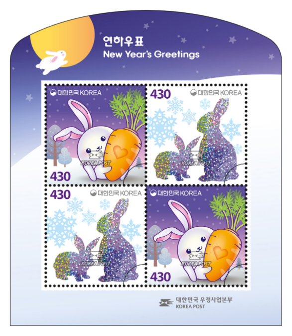 这套生肖纪念邮票共两款,由法国华人艺术家陈江洪设计。其中一款面值1.8欧元,票面是蓝色背景下月宫中的白兔,另一款面值1.16欧元,票面是粉红色背景下一只俯身的白兔,两款邮票的票面上下方分别用法文和中文书写“兔年”字样。据了解,在法国,兔子寓意令人愉悦、安静、负责,象征着仁慈和谨慎。