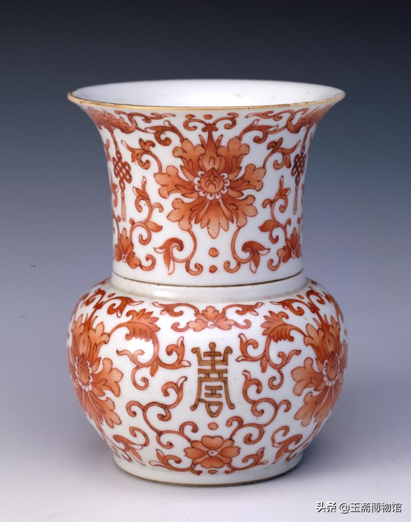 白地矾红彩“寿”字缠枝莲纹渣斗北京故宫博物院藏