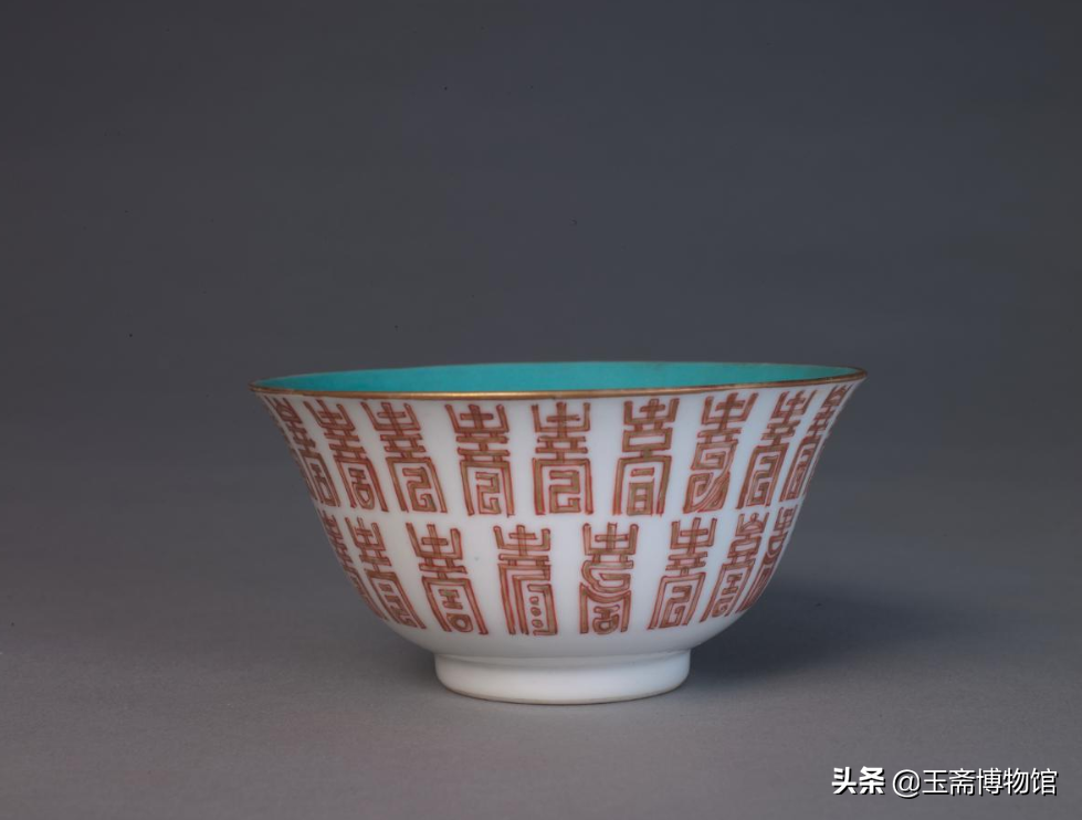 里松石绿釉外白地矾红彩描金寿字碗北京故宫博物院藏