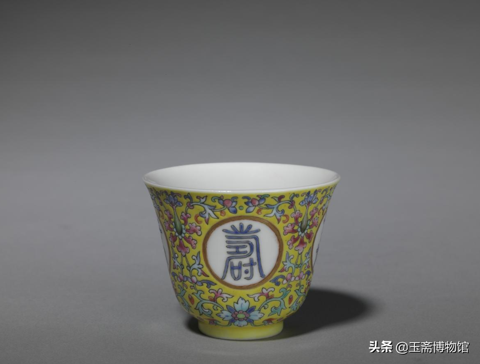 黄地粉彩花卉纹“万寿无疆”杯北京故宫博物院藏