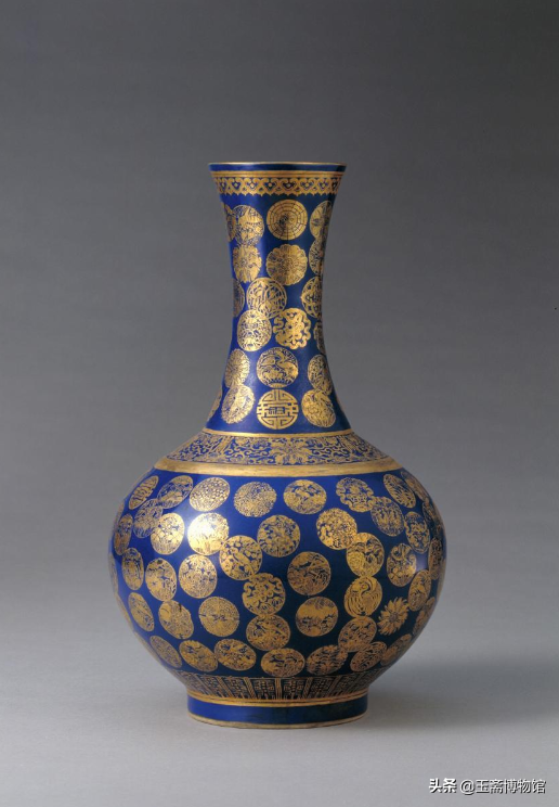 祭蓝描金团龙纹“寿”字撇口瓶北京故宫博物院藏