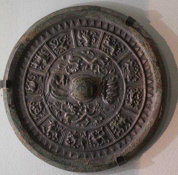 除了龙纹作为主体纹饰之外,龙还与虎、朱雀、玄武等其他动物纹相结合,形成龙虎、四神、十二生肖等多种组合形式,创造出全新的铜镜纹饰,如西汉鎏金中国大宁四神博局镜、新莽鎏金桼言四神博局镜、隋代四神镜上的青龙,唐代八卦十二生肖镜上的辰龙等。龙在其中的角色并不突出,与其他动物所占分量相等,仅占二分之一、四分之一或十二分之一。笔者在以往文章中对龙虎镜、四神博局镜谈及较多,今重点讲述别具特色的十二生肖镜。